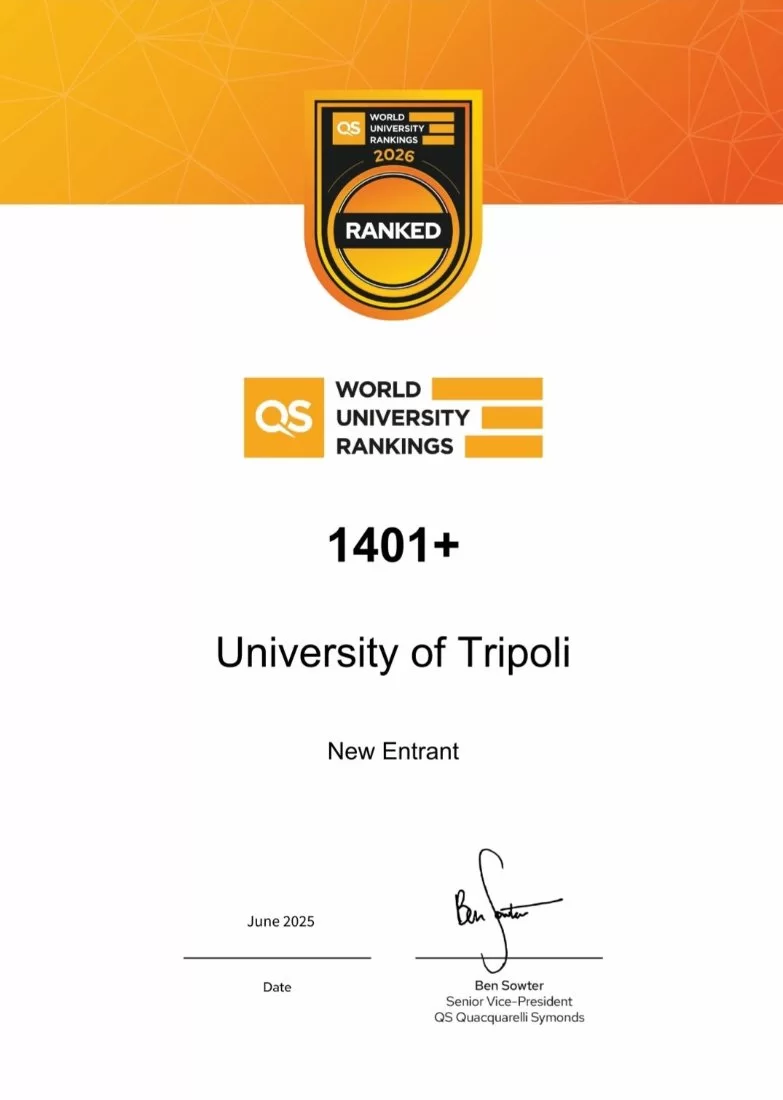 #تصنيف_جامعة_طرابلس للعام 2026 مقياس التصنيف الدولي “QS World Universities Rankings” تحصلت مرتبة ضمن الـ1401+.تهانينا وألف ألف مبروك #جامعة_طرابلسوبذلك تعتبر حسب هذا التصنيف من أفضل ألف وخمسمائة جامعة في العالم في تصنيف QS الشهير. يستند هذا التصنيف إلى مجموعة من المعايير الدقيقة، أبرزها:: #السمعة_الأكاديمية، #جودة_التعليم، #البحث_العلمي_النوعي، #ورضا_أرباب_العمل_عن_الخريجين، إضافة إلى #التشاركية_الدولية.#واستقطاب_الأساتذة_والطلاب_الاجانب.وتجدر الإشارة إلى أن التصنيف أدرج هذا العام معياراً جديداً يتعلق بـ"التنوع والانحياز"، ويقيس تنوع الطلاب العرب والأجانب.جامعة طرابلس - ليبيا الأولى على المستوى الوطني. كلية الاقتصاد والعلوم السياسية - جامعة طرابلس قسم الجودة وتقييم الأداء كلية الاقتصاد جامعة طرابلس