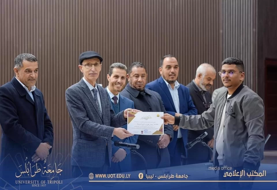 أُقيمت صباح اليوم الأحد الموافق 8 يناير 2023 م احتفالية تكريم الطلبة المتفوقين بكليات القاطع " ج " للفصل الدراسي " ربيع 2022 م " وعرض مشروع إعادة تأهيل مخطط عام المركب " ج " تاجوراء وذلك على تمام الساعة 11:00 صباحاً بمدرج رشيد كعبار بحضور السيد رئيس جامعة طرابلس رفقة السيد وكيل وزارة الزراعة والسيد وكيل الجامعة للشؤون العلمية والسيد وكيل الجامعة للقاطع " ج " والسيد وكيل الجامعة للشؤون الطلابية والسيد وكيل العلوم الطبية والسيد المسجل العام والسيد عميد كلية الاقتصاد والعلوم السياسية والسيد عميد كلية تقنية المعلومات والسيد وكيل كلية تقنية المعلومات والسيد منسق كلية القانون تاجوراء والسادة أعضاء المجلس البلدي تاجوراء ولفيف من أعضاء هيئة التدريس والطلبة وذويهم، حيث تم تكريمهم وتسليم شهائد تفوقهم من رئاسة الجامعة إضافةً لبعض الجوائز التحفيزية وذلك من منطلق دعم جامعة طرابلس الدائم لأبنائها المتميزين والدفع بهم للمضي قدماً نحو الأمام والتفوق .وفيما بعد قام مشرفي مشروع إعادة تأهيل مخطط مركب " ج " العام بتقديم عرض فني للمشروع لرئاسة جامعة طرابلس والحضور وقد نال استحسان وإعجاب الجميع .سائلين الله عز وجل دوام الإبداع والتوفيق للجميع .#المكتب_الإعلامي_بجامعة_طرابلس