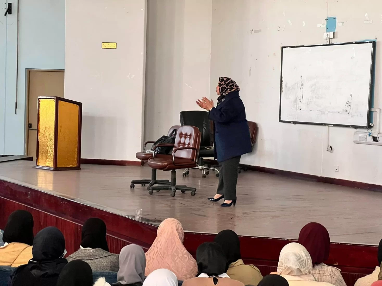 أقيمت صباح يوم الاثنين بمسرح الكلية .محاضرة توعوية للطلبة الجدد فئة البنات بعنوان ( أدبيات الطالب الجامعي ).تحت إشراف الدكتورة الفاضلة نعيمة قجم. وكانت محاور المحاضرة على النحو التالي: