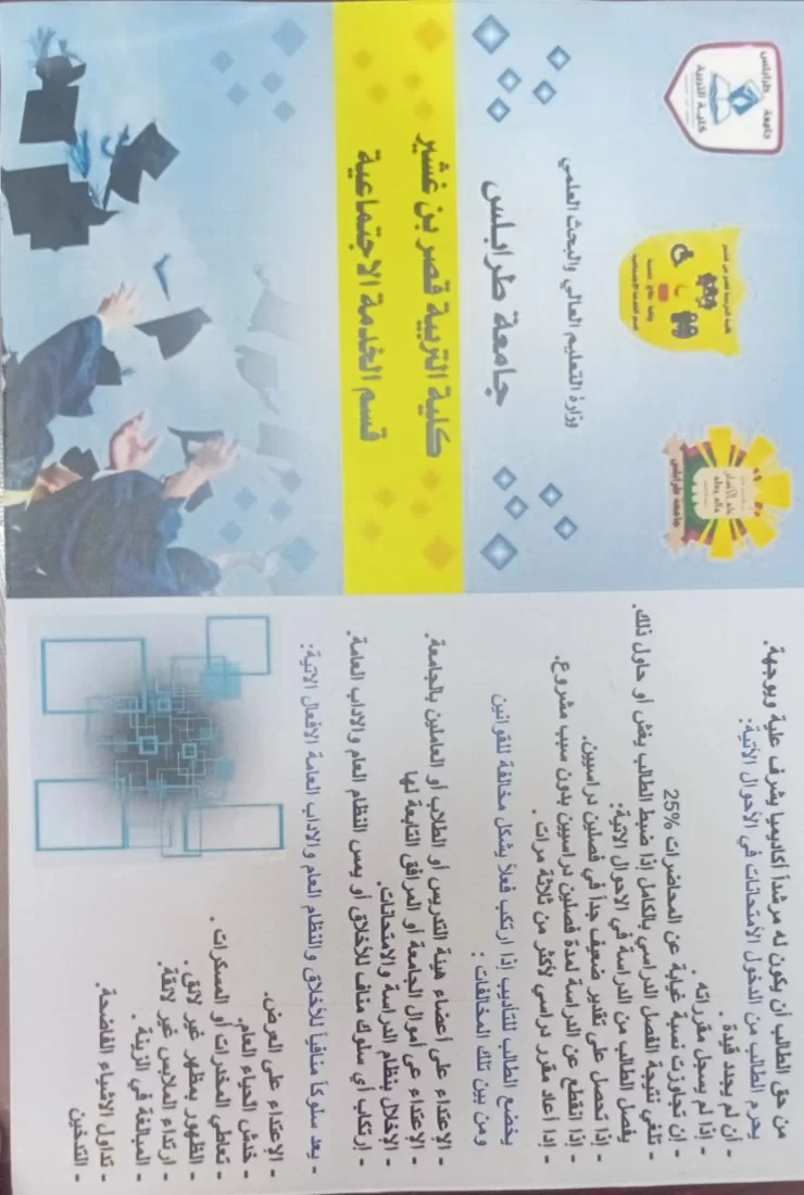 استلام المطوية الخاصة بالقسم من المطبعة يوم الاثنين الموافق 24/2/2025م من قبل رئيس قسم الخدمة الاجتماعية