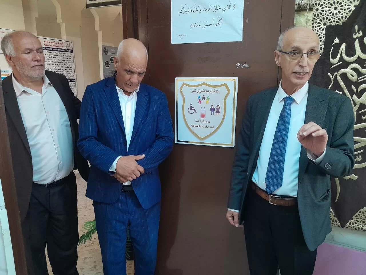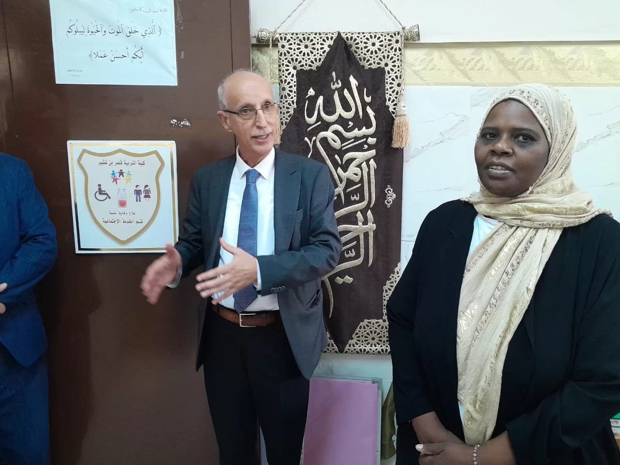 خلال زيارة زيارة الفريق المركز الوطني لتأسيس والجودة في المؤسسات التعليمية كان في استقبالهم رئيس الجامعة دكتور خالد عون ودكتور بشير الزرزاح وقام خلال هذه الزيارة بجولة على الأقسام العلمية بالكلية وكان من بينهم قسم الخدمة الاجتماعية وكان في استقبال رئيس الجامعة رئيس القسم ومنسق الدراسة والامتحانات ومنسق الجودة بالقسم ومجموعة من أعضاء هيئة التدريس بالقسم كما أنه تم الأبناء على المجهودات المبذولة في القسم والتي تهدف إلى الرفع من مستوي العملية التعليمية بالقسم