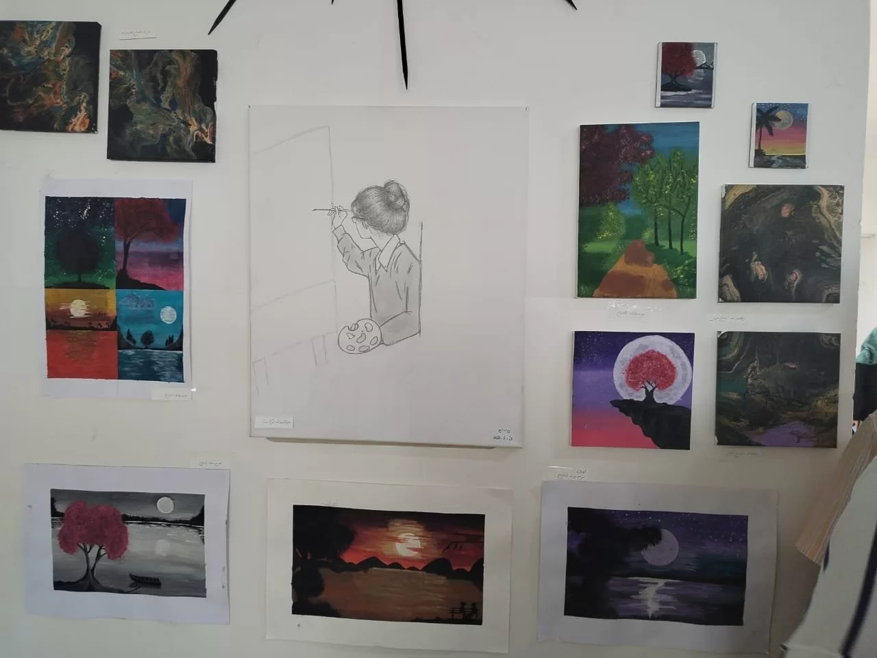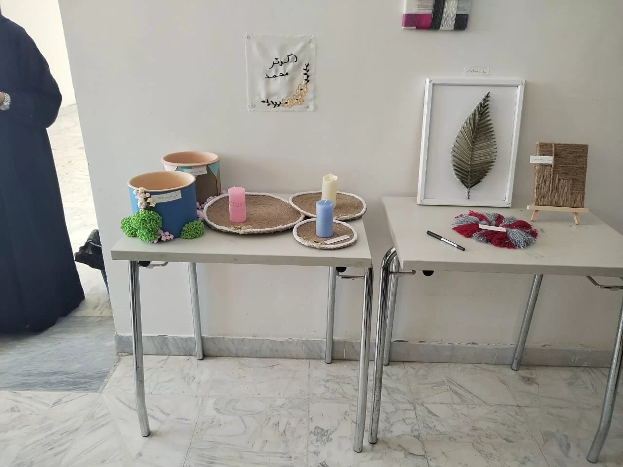 مع قرب انتهاء الفصل الدراسي اقيمت في يوم الامس معرض خاص بطالبات التربية الفنيو في قسم معلم فصل حيث افتتح المعرض عميدالكلية الدكتور عبداللطيف عبد السلام شعبان ووكيل الكلية الاستذ الهلول القمي ورئيس قسم معلم فصل الاستاذة هناء بن غرسة و رئيس قسم الجود ة و وجومةعة من اعضاء هئية التدريس بالقسم و الاقسام الاخرى