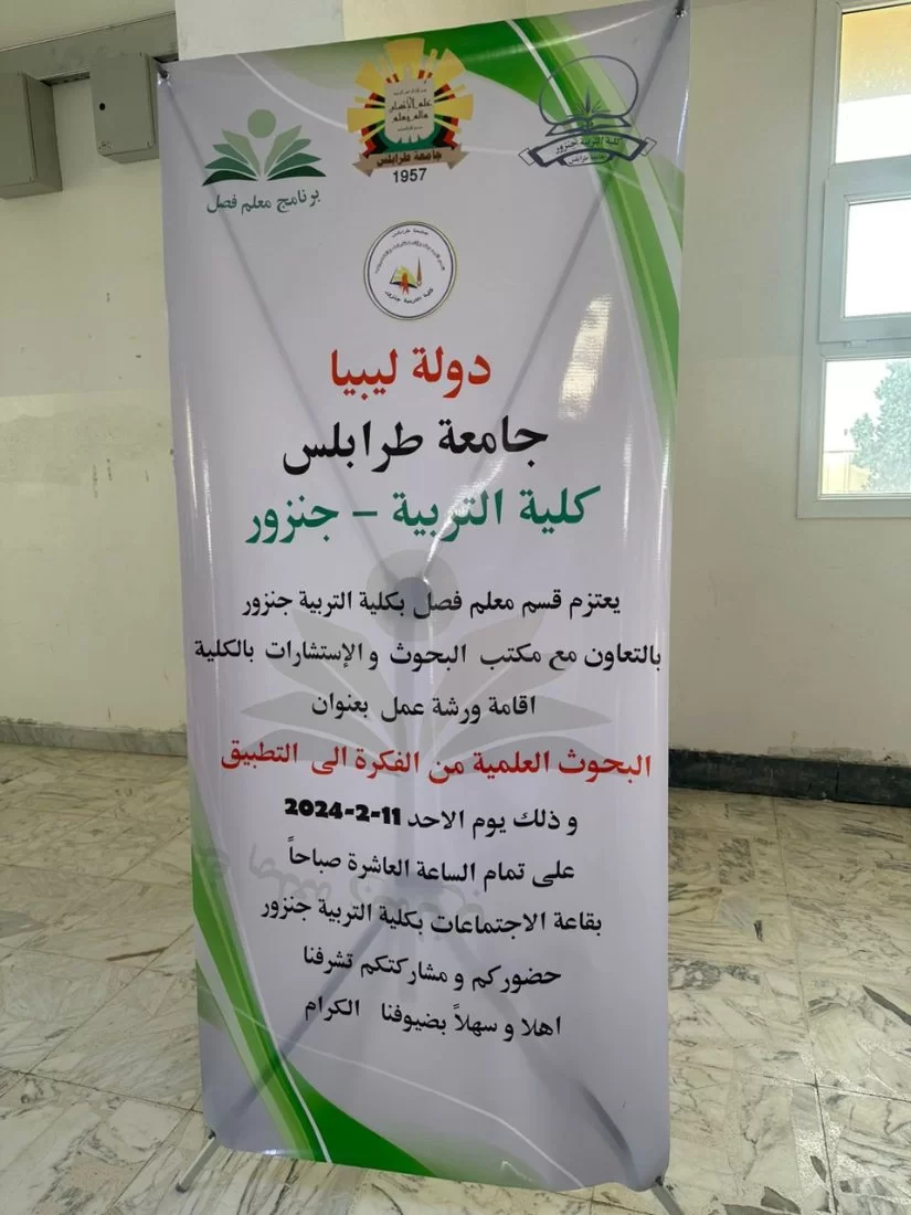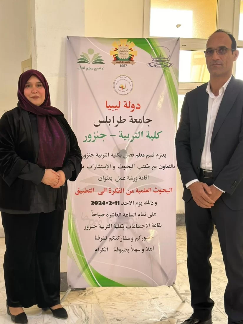 أقيمت صباح امس الاحد ورشة عمل بعنوان البحوث العلمية من الفكرة الى التطبيق ، قدمتها الدكتورة هدى الرواب و الاستاذ سالم غليليب ، بأشراف وتنظيم قسم معلم فصل و قسم البحوث والاستشارات بكلية الترببة جنزور ، وذلك ضمن الفعاليات والورش التي ينظمها للفصل الحالي حسب الخطة الفصلية.شهدت الورشة حضور و مشاركة قامات علمية من مختلف الجامعات الليبية و تله من أعضاء هيئة التدريس بالقسم و بالكلية و لفيف من طالبات القسم ، استعرض فيها المشاركين بالتفصيل عدة محاور مختلفة للبحث العلمي مثل- الاتجاهات الحديثة في تصميم البحوث التربوية- معايير كتابة الخطة البحثية-شروط اختيار و صياغة مشكلة البحث- معايير تقييم البحوث التربوية- الأخطاء الشائعة في كتابة البحوث التربوية- الضوابط القانونية و الاخلاقية في اعداد البحوث.و في نهاية الورشة تم تكريم المشاركين و الحضور بشهائد تقدير.