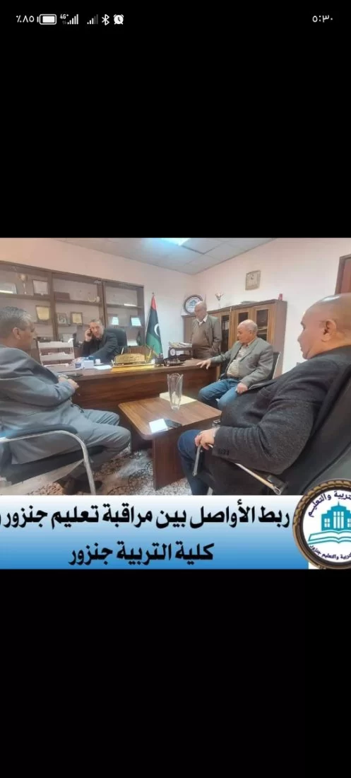 في إطار التعاون بين مراقبة التربية والتعليم جنزور وكلية التربية، ولربط الأواصل بينهما من أجل الرقي بالعملية التعليمية، السيد المراقب يلتقي بالسيد وكيل الشؤون التعليمية بكلية التربية وذلك لمناقشة سبل التعاون بين المراقبة وكلية التربية لتنفيذ محاضرات تثقيفية في