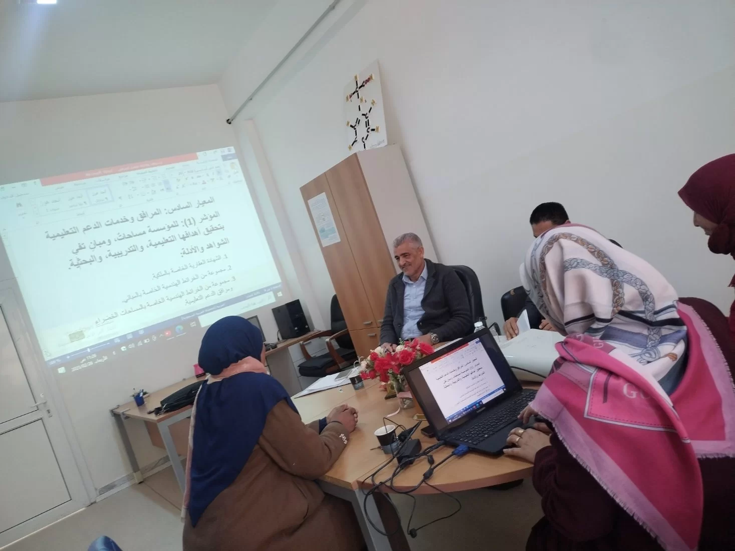 في إطار استعداد الكلية للاعتماد المؤسسي و البرامجي وبعد التوجيهات المقدمة من عميد الكلية الدكتور عبد اللطيف عبد السلام شعبان ورئيس قسم الجودة الدكتورة غالية احمد قرقاب أقيمت طوال الاسبوع الماضي ورش عمل لمعايير الاعتماد المؤسسي حيث قامت رئيس قسم الجودة بإدارة الورش إضافة إلى رؤساء لجان المعايير وحضور لرئيس قسم التوثيق والمعلومات في بعضها لابدا العون ان امكن وأبدى الكل استعدادهم بل وان بعضهم بدء فعليا في العمل.