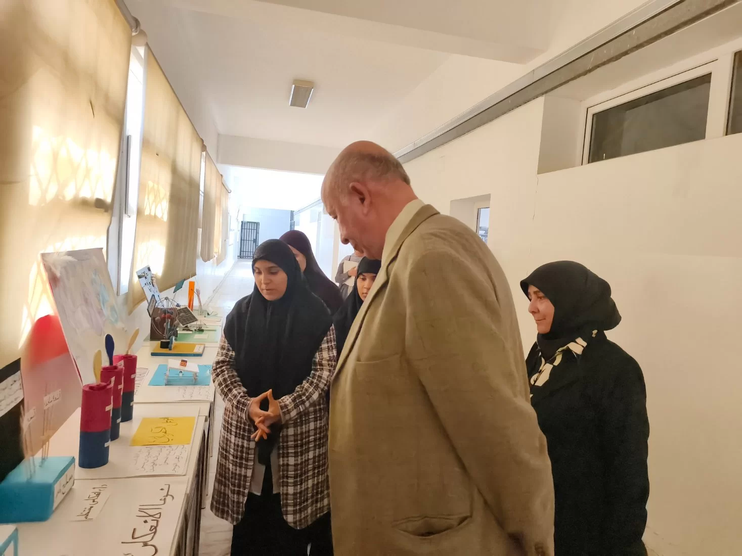 اقيم في صباح يو الامس معرض قسم الفيزياء وذلك لعرض التجارب العلمية التفاعلية و بالتعاون نع قسم البحوث والاستشارات و بحضور عميد الكلية الدكتور عبد اللطيف عبد السلام شعبان ووكيل الشؤون العلمية الدكتورة هناء إبراهيم الصويعيورئيس قسم الفيزياء الاستاذة زهور ونخبة من اساتذة القسم ورئيس قسم الجودة و رئيس قسم البحوث و الاستشارات واعرب الجميع عن سعادتهم بهذا المعرض.