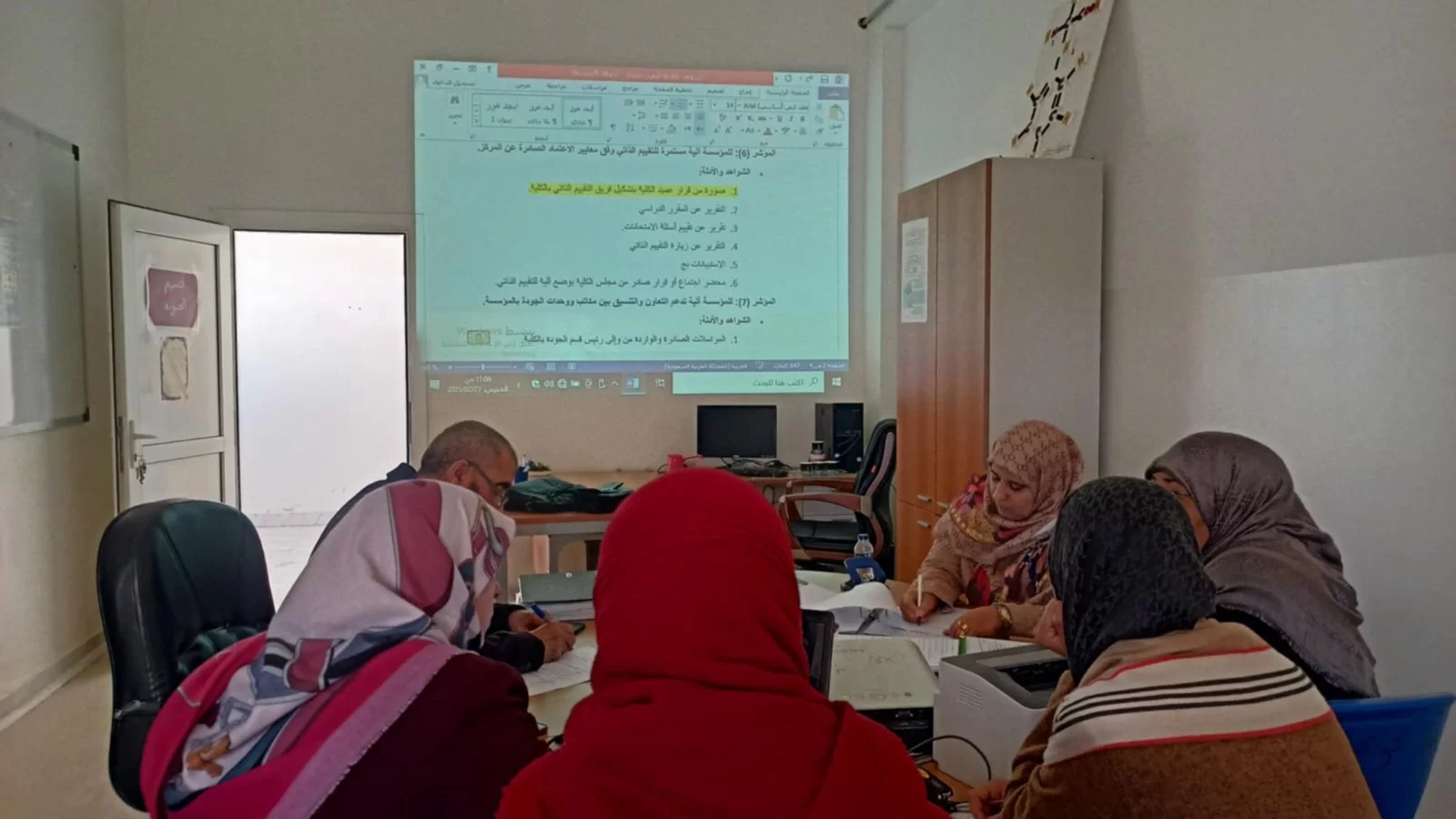 في إطار استعداد الكلية للاعتماد المؤسسي البرامجي وبناء على توجيهات رئيس قسم الجودة بالكلية الدكتورة غالية قرقاب أقيمت اليوم ورشة عمل لمعيار الجودة والذي ترأسه رئيس قسم الجودة بالكلية إضاءة إلى مجموعة من الاساتذة الاجلاء وهم