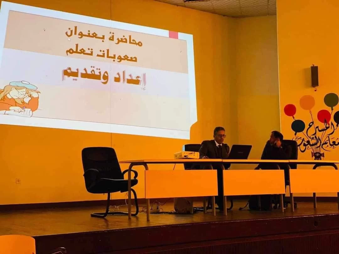في اطارالخدمة المجتمعية و التعاون المشترك بين مكتب خدمة المجتمع والبيئة بالكلية وقسم التربية الخاصة قدم الدكتور سالم ابوراوي محاضرة بعنوان صعوبات التعلم استهدفت معلمات التعليم الأساسي والثانوي الأساسي (لمجموعة من مدارس سوق الجمعة) وكان التجمع بمسرح مدرسة العرب للتعليم الأساسي والثانوي، تطرق الدكتور لمجموعة من المحاور منها: