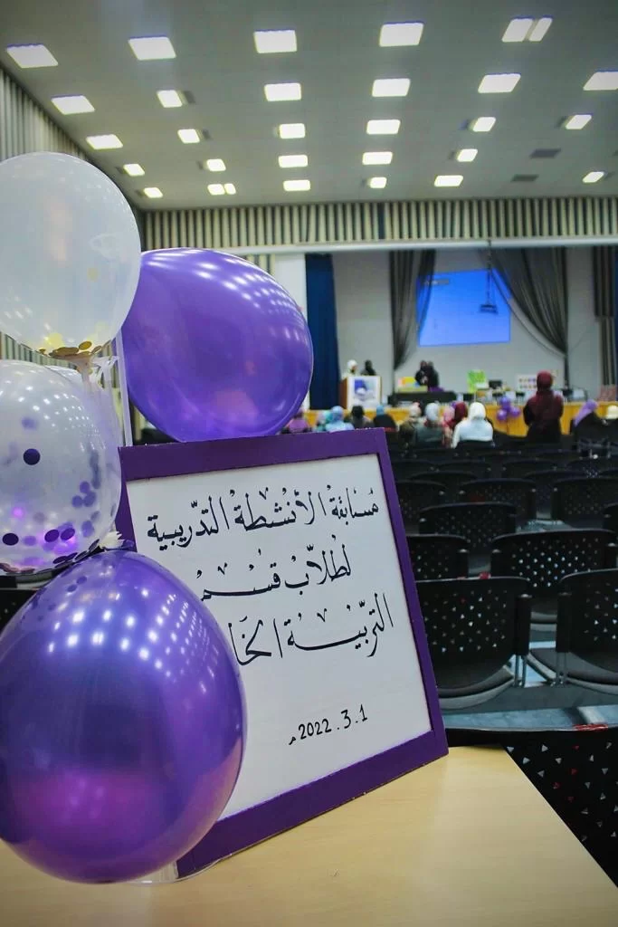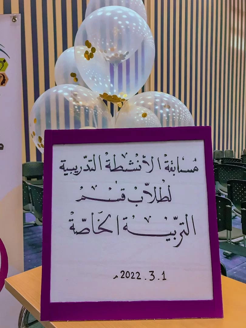 اعد منسق النشاط أ. ربيعة حسين مسابقة للأنشطة التدريبية لطلاب القسم وكان الهدفد من المسابقة بث روح المنافسة بين الطالبات لإعداد أفضل الوسائل والألعاب التعليمية التي تنمي القدرات التعليمية لذي طالب التربية الخاصة وتم إعداد برنامج متكامل يتضمن إعداد لجنة للتقييم وجوائز تحفيزية وفقرات نالت استحسان الحاضرين وقد حضر الحفل اعضاء هيئة التدريس بالقسم والطالبات