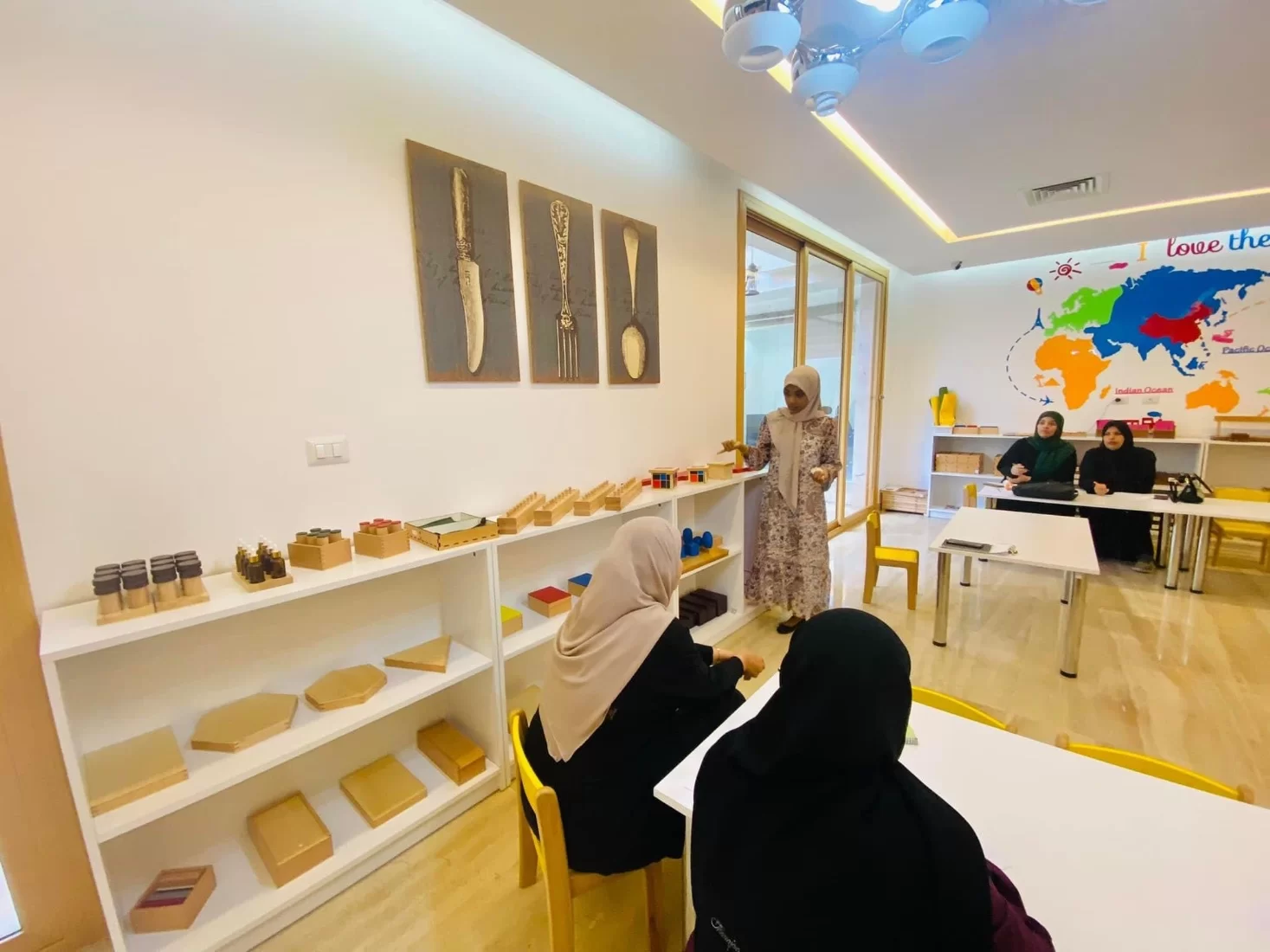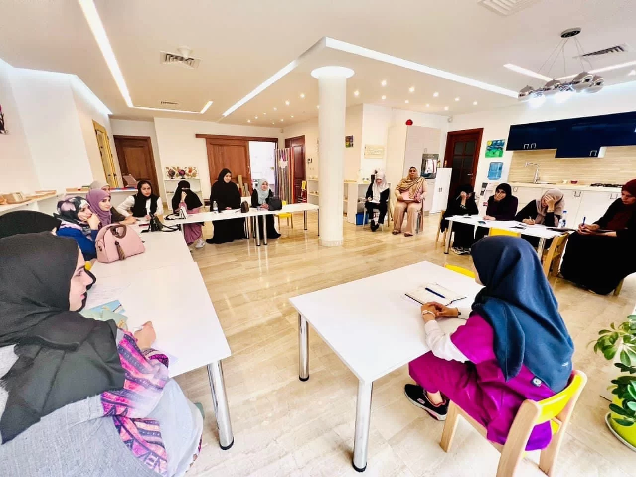 حيث قامت المدربة مواهب بشرح ركن الحياة الحسية في منهج المونتسوري وكان هناك تفاعل وتجاوب رائع بين الجميع وما ان مضي الوقت سريعا وبدون الشعور به حتى جاء موعد الدورة الثانية الاكثر من رائعة حيث قامت المدربة سارة الليد بسرد شرح متسلسل ودقيق عن التطبيقات العملية في التحليل السلوك التطبيقي والنموذج الثلاثي