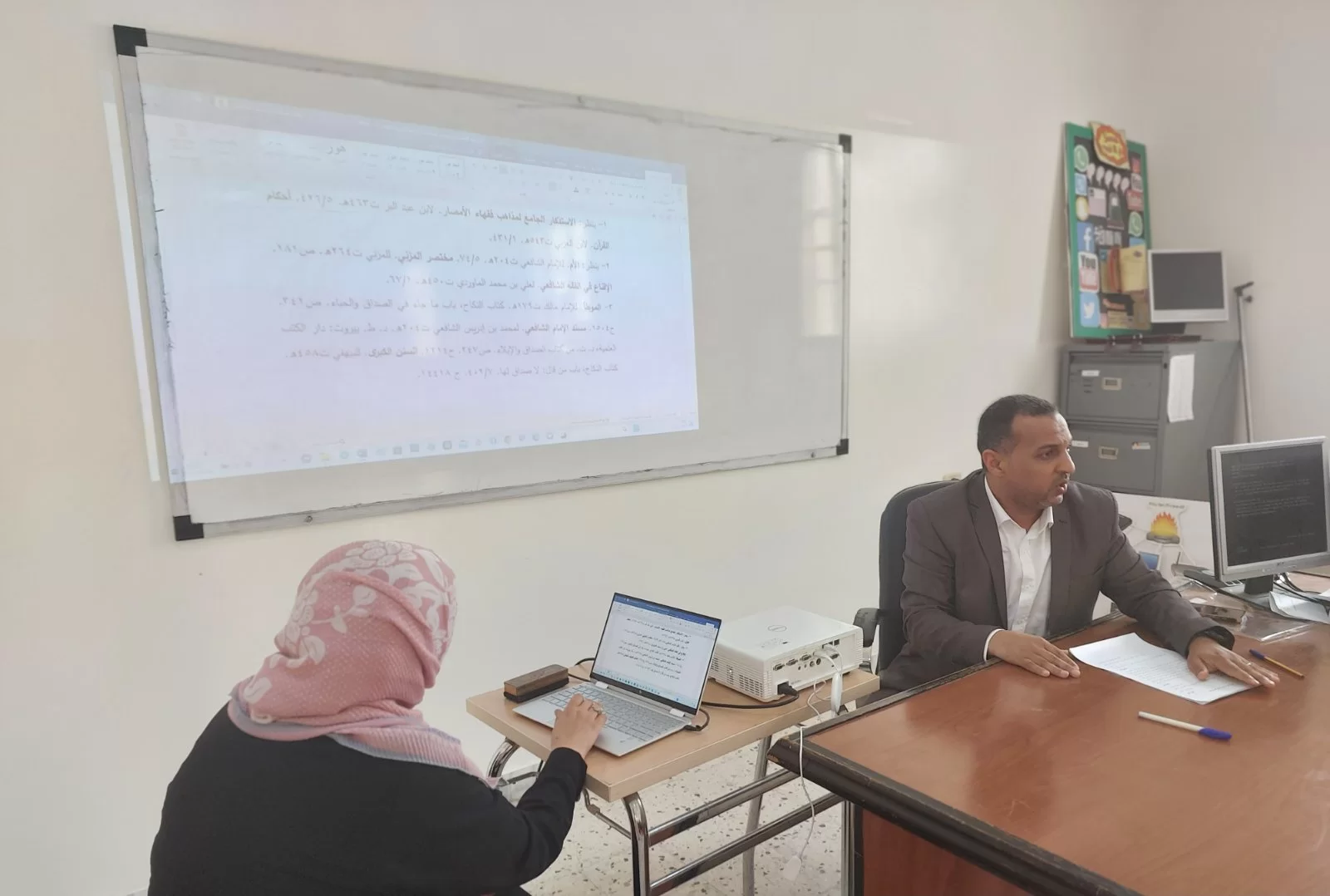 نظم قسم اللغة العربية والدراسات الإسلامية اليوم الثلاثاء الموافق 6/6/2023 محاضرة علمية المعنونة (إضاءات حول الجوانب الفنية في البحث العلمي ) من إلقاء رئيس القسم د. إمهيدي نجم وبالتنسيق مع منسق المشاريع أ. أحمد بن ناجي ، وقد استهدفت المحاضرة طالبات المشروع لهذا الفصل والمشروع المبدئي ، وذلك لتحسين منهجية وضوابط كتابة المشروع العلمي ومراعاة بعض الجوانب الفنية التي كثيرا ما يخطئ فيها طلابنا. و حوت المحاضرة المحاور التالية: