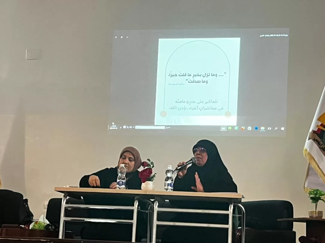 في أجواء طيبة موفقة ، ألقت اليوم الثلاثاء الموافق 30-1-2024 على مسرح الكليةالدكتورة إيناس شلوف محاضرتها المعنونة : (الكلمة وأثرها على القلوب ) التي تطرقت فيها إلى عدة محاور و هي : 1- نعمة الكلام .2- الكلمة طريق إلى الجنة أو مهوى إلى النار .3- الكلمة الطيبة و الكلمة الخبيثة .4- انتقِ كلماتك .فلها كل الشكر على ماتفضلت به من كلمات تحفيزية على الكلمة الطيبة و أثرها علة المستمع ، و الشكر موصول أيضا للدكتورة كلثوم ارحيمة التي مهدت للمحاضرة و احتفت بمعدتها ، بكلمات راقية و ثناء باذخ ، بمعية الحضور من رئيس القسم المكلف د. ليلى الزقوزي ، و منسق النشاط د. ناهد الباجقني ، و طالبات الكلية اللائي عبّرن عن شديد إعجابهن و استفادتهن من المحاضرة القيّمة مع تمنيات بالإكثار من مثل هذه المحاضرات .