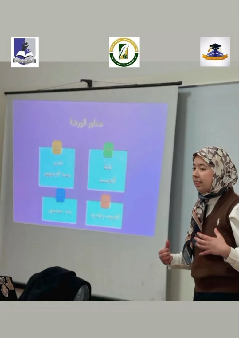 أقيمت صباح يوم الاثنين الموافق 26/1/2026م ورشة تدريبية بقاعة المرحوم الفتحلي ، تحت عنوان مهارة الإلقاء والتحدث أمام الجمهور، من تقديم الطالبة (عائشة الشيخي) طالبة بقسم اللغة العربية والدراسات الإسلامية ، وبالتعاون مع اتحاد الطلبة بالكلية ،حيث استهدفت الورشة عدد من أعضاء هيئة التدريس و الطالبات بالكلية .