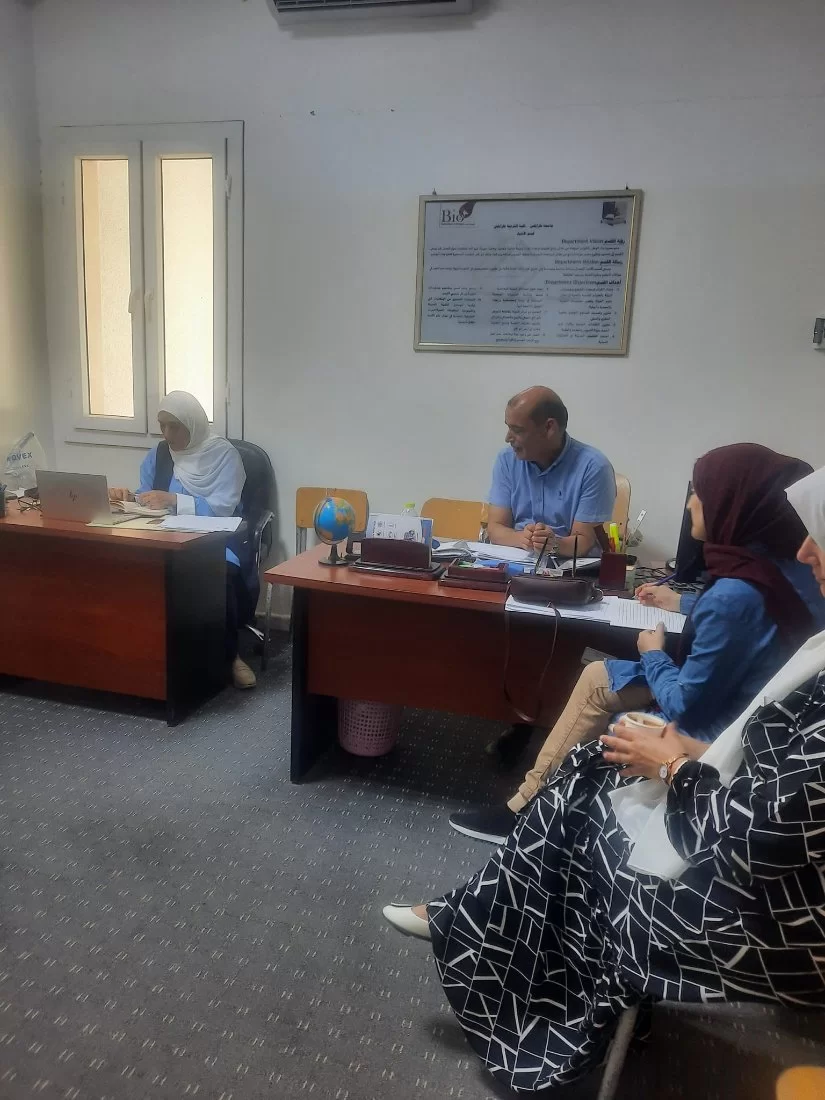 عُقد صباح يوم الخميس؛ 23 مايو 2024م. على تمام الساعة التاسعة صباحاً الاجتماع الدوري (الرابع) لسنة 2024م. لمجلس قسم الأحياء برئاسة أ. الطاهر المصري رئيس قسم الأحياء، وبحضور أعضاء هيئة التدريس بالقسم . افتتح الاجتماع بكلمة ترحيبية من قبل رئيس القسم ومن ثم عرض بنود الإجتماع على أعضاء هيئة التدريس، وهي