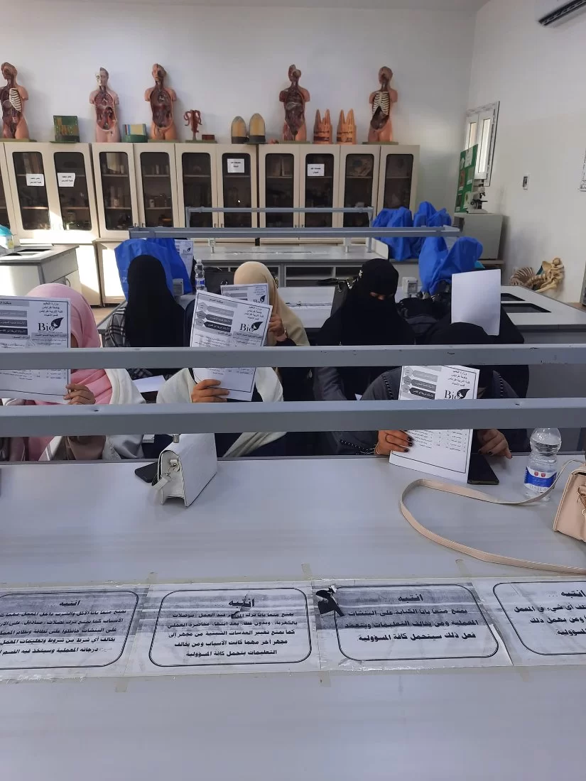 نظم قسم الأحياء صباح اليوم؛ الثلاثاء الموافق: 5 / 12 / 2023 م. الملتقى الفصلي الخاص باستقبال الطلبة الجدد للفصل الدراسي (خريف 2023) بحضور رئيس القسم وعدد من أعضاء هيئة التدريس بالقسم و فنيات المعمل.رحب السيد رئيس القسم: أ. الطاهر المصري بالطالبات الجدد وأكد على أهمية إقامة هذا الملتقى التعريفي بين الطلبة وأساتذتهم، ومن ثم أفسح المجال لباقي أعضاء هيئة التدريس بالقسم للتعريف بأنفسهم و تخصصاتهم والمقررات التي يدرسونها وتقديم نصائحهم. تضمن برنامج الملتقى عرض توضيحي للتعريف بالقسم وبعض الأنشطة قدمته أ. فتحية المجدوب منسق الدراسة والامتحانات بالقسم، وخلال البرنامج تم توزيع النشرة التعريفية لقسم الأحياء على الطالبات الجدد وذلك لأهمية اطلاع الطالبات على رؤية و رسالة وأهداف القسم والاطلاع على دليل الطالب ودليل الإرشاد الأكاديمى من أجل الاسترشاد بهم لتذليل الصعاب وتفادي العقبات خلال مسيرتهن التعليمية. حضر الملتقى أيضاً خريجاتنا القدامى واللاتي بدورهن عرضن على زميلاتهن الجدد ثمرة تخرجهن من قسم الأحياء والانجازات التي حققوها فى حياتهن العملية، وحرصن فيها على تشجيع زميلاتهن لمواصلة دربهن بكل عزيمة واجتهاد، كما قمن بالرد على الأسئلة والاستفسارات التي وجههوها لهن الطالبات.