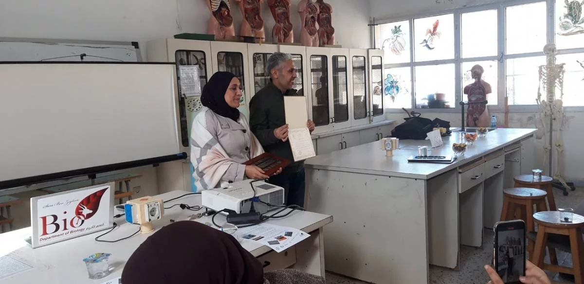 استضاف قسم الأحياء اليوم : الإثنين بتاريخ: 10/ 2/ 2020 م أعضاء من الجمعية الليبية لعلوم البحار:Libyan Marine Science Association وشرفنا بالزيارة كلآ من د . ضو أبو القاسم حدود / رئيس الجمعية الليبية والمغربية لعلوم البحار، وباحث بمركز البحوث للأحياء البحرية.أ. علي شفرن عضو/ بالجمعية الليبية والمغربية لعلوم البحار وباحث بمركز الأحياء البحرية / قسم الزراعة المائية.أ. ب. محمد الأمين الشويهدي/ عضو بالجمعية الليبية والمغربية لعلوم البحار، وباحث بمركز الأحياء البحرية / قسم الجودة وأمراض الأحياء البحرية.وكانت المحاضرة على تمام الساعة العاشرة صباحا" بمعمل قسم الاحياء بحضور أعضاء هيئة التدريس بالقسم ومدير مكتب المعلومات والتوثيق بالكلية أ. أسامة القديري،وحضر أيضآ عدد من طلبة القسم والخريجات اللاتي تقدمنّ بطلب تنزيل مشروع التخرج للفصل القادم.ولقد تناولت المحاضرة عدة جوانب هامة لا يسعنا هنا الحديث عنها بالكامل لأهمية كل ما ورد فيها من معلوماتٍ قيمة، فلقد ألقى رئيس الجمعية: د. ضو حدود الجزء الأول من المحاضرة والتي هدفت للتعريف بماهية المناطق الرطبة وتعرضها للتأثيرات البيئية والنشاط البشري الغير ممنهج كاستعمال الموارد البشرية بشكل مفرط، كما قام بالتعريف بالعديد من البيئات الرطبة كالبحيرات والوديان والسبخات في الجنوب الليبي والساحل الغربي والشرقي ووسط ليبيا وأهميتها الاقتصادية والبيئية، كما أشار إلى مفهوم السياحة الإيكولوجية للمحميات الليبية وإلى أهمية استثمارها والمحافظة عليها وأهم مناطق الجذب السياحي بليبيا.كما ألقى أ. علي شفرن الجزء الثاني من المحاضرة حيث قام بالتعريف بالجمعية الليبية لعلوم البحار بشكل وافي وعرض مهام وأهداف الجمعية، كذلك عرّف بمشروع *معا" لشواطئ مستدامة* Togather for Sustainable Shores الذي يهدف إلى الاهتمام بالتنوع الحيوي في مختلف البيئات الرطبة بليبيا.كما قدم أ. محمد الشويهدي نبذة تعريفية بمشاريع زراعة الأسماك ومدى أهميتها الاقتصادية والبيئية في مقاومة الاستنزاف المُفرط للثروة السمكية. وفي نهاية المحاضرة تفضّل أعضاء الجمعية بتقديم مقترحات لمساعدة طلبة المشاريع والمشاركة مع إدارة القسم بالاستشارات العلمية والبحثية والمعملية وكذلك مساعدة البحاث الراغبين في الانضمام للجمعية أو الاستفادة من الهيئة العلمية للبحث والتكنولوجيا والابتكار ( الهيئة الوطنية للبحث العلمي سابقا") في تقديم أوراقهم البحثية.....وفي الختام نشكر ضيوفنا الكرام الذين شرفونا اليوم من أعضاء الجمعية الليبية لعلوم البحار الذين أفادو الحضور الكريم بالكم الهائل من المعلومات القيّمة والهامة عن الجمعية وأهدافها ونشاطاتها المتنوعة، بارك الله لهم مجهوداتهم ووفقهم في عملهم وزادهم علمآ ونفع بهم.والشكر الجزيل لرئيس قسم الأحياء أ. سارة بن زقلام لاستضافتها هذه النخبة المميزة وتدبيرها الجيد لكل مايفيد طالباتها وحسن إدارتها لنشاطات القسم والعمل الدائم لتطوير أدائه كل عام، جزاها الله عنه خيرآ وبارك لها علمها وعملها.وشكر خاص لمدير مكتب المعلومات والتوثيق أ. أسامة القديري على حضوره الراقي ومشاركته الفعّالة في هذا اليوم، ومواكبته الدائمة لكل نشاطات القسم بارك الله له مجهوداته وأمدّه بالصحة والعافية ونفع به.والشكر لكل الزملاء والزميلات من أساتذة القسم وفنيات المعمل على إعدادهم الجيد وتحضيرهم الأنيق لهذا اليوم، ولايفوتنا أن نشكر طالباتنا العزيزات على المساهمة في تنظيم وتجهيز المعمل والإشراف على تنظيم البوفيه المتواضع الذي ساهم في إعداده كل أساتذة القسم لضيوفنا الكرام بما يليق بواجب الضيافة والكرم. والله يوفقنا دائماً لما فيه الخير لصالح الطلبة والمسيرة التعليمية...