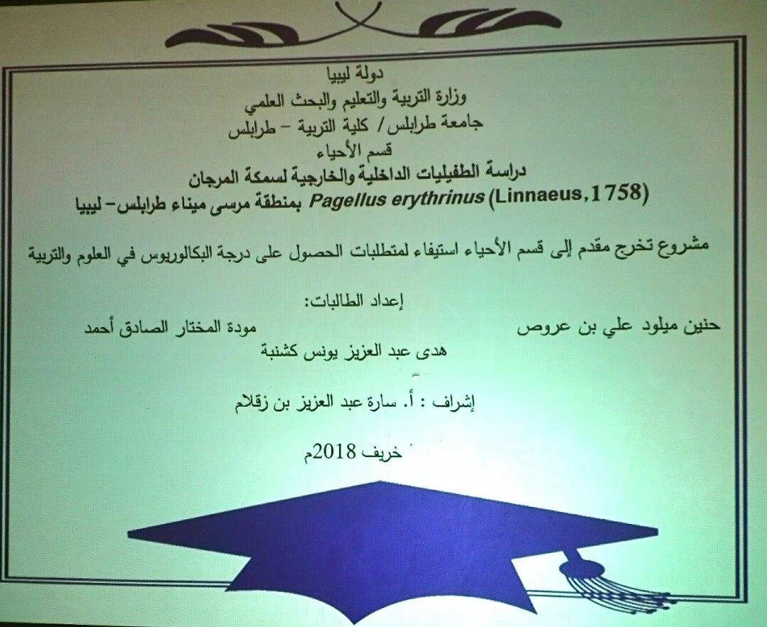 * دراسة الطفيليات الداخلية والخارجية لسمكة المرجان Pagellus erythrinus بمنطقة مرسى ميناء طرابلس \ ليبيا