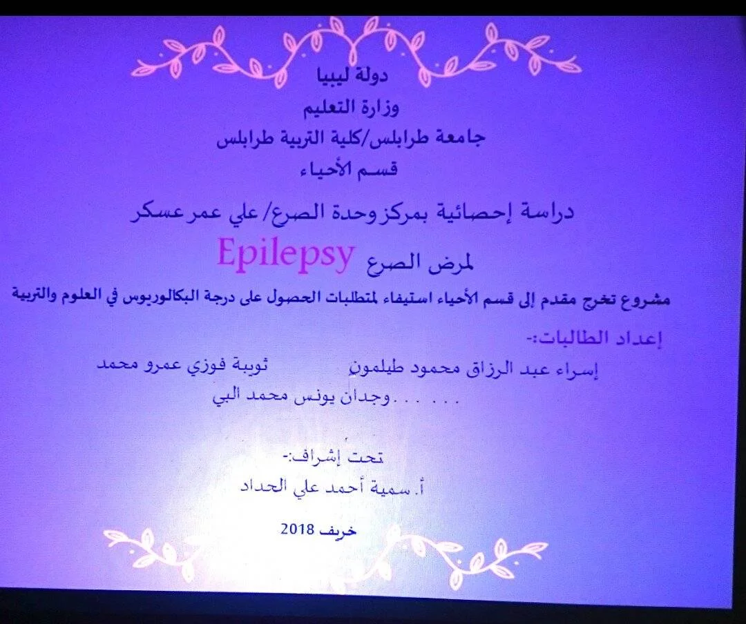 * دراسة إحصائية بمركز وحدة الصرع\ علي عمر عسكر لمرض الصرع Epilepsy