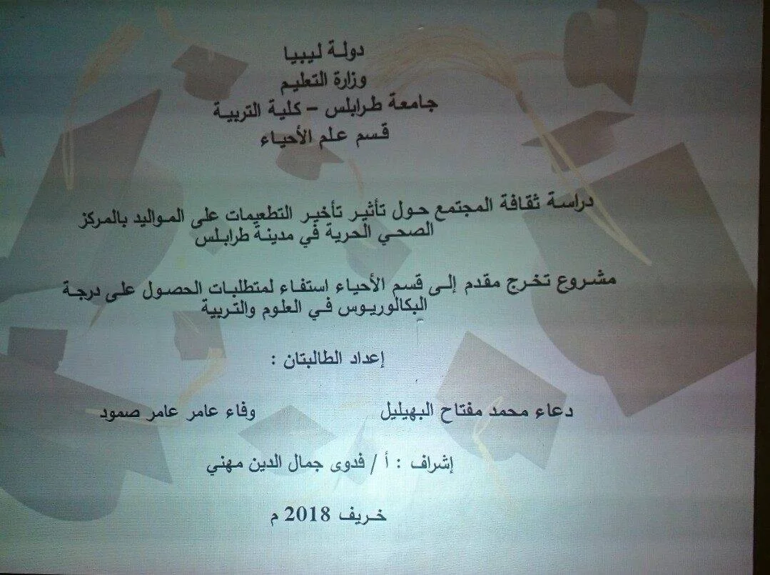 * دراسة ثقافة المجتمع حول تأثير تأخير التطعيمات على المواليد بالمركز الصحي في مدينة طرابلس