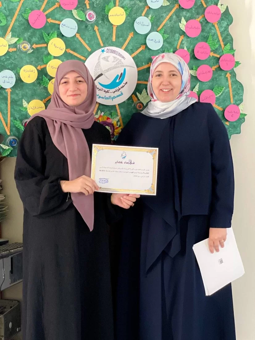 #متابعات**تهنئة بمناسبة مناقشة مشاريع التخرج**يسر قسم الحاسوب بكلية التربية طرابلس أن يتقدم بأحر التهاني وأصدق التبريكات لطلابنا الأعزاء بمناسبة مناقشة مشاريع تخرجهم بنجاح.لقد كانت هذه اللحظة ثمرة جهودكم الكبيرة وتفانيكم في العمل والدراسة. نفتخر بما قدمتم