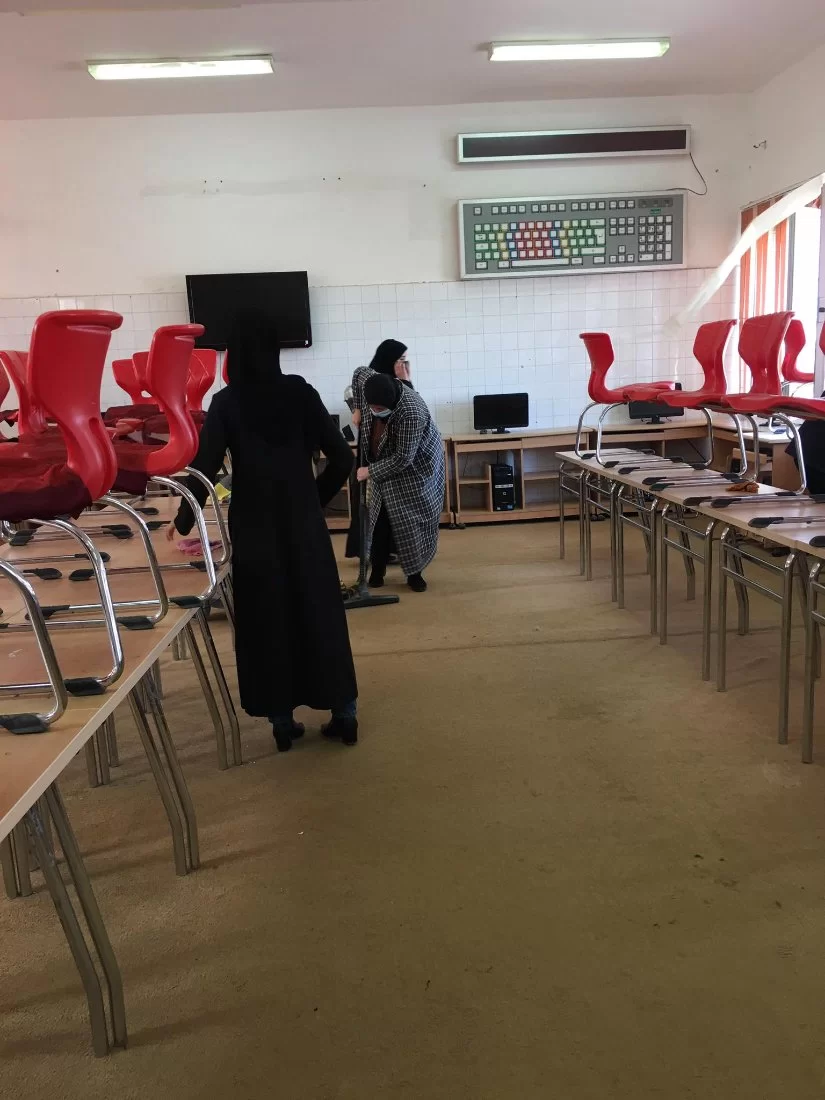 تنظيف اروقة قسم اللغة الانجليزية بكلية التربية جامعة طرابلس