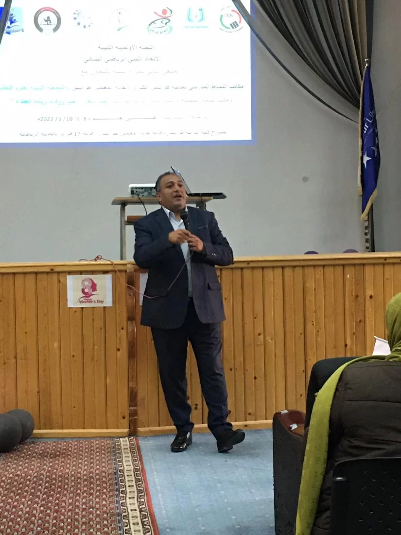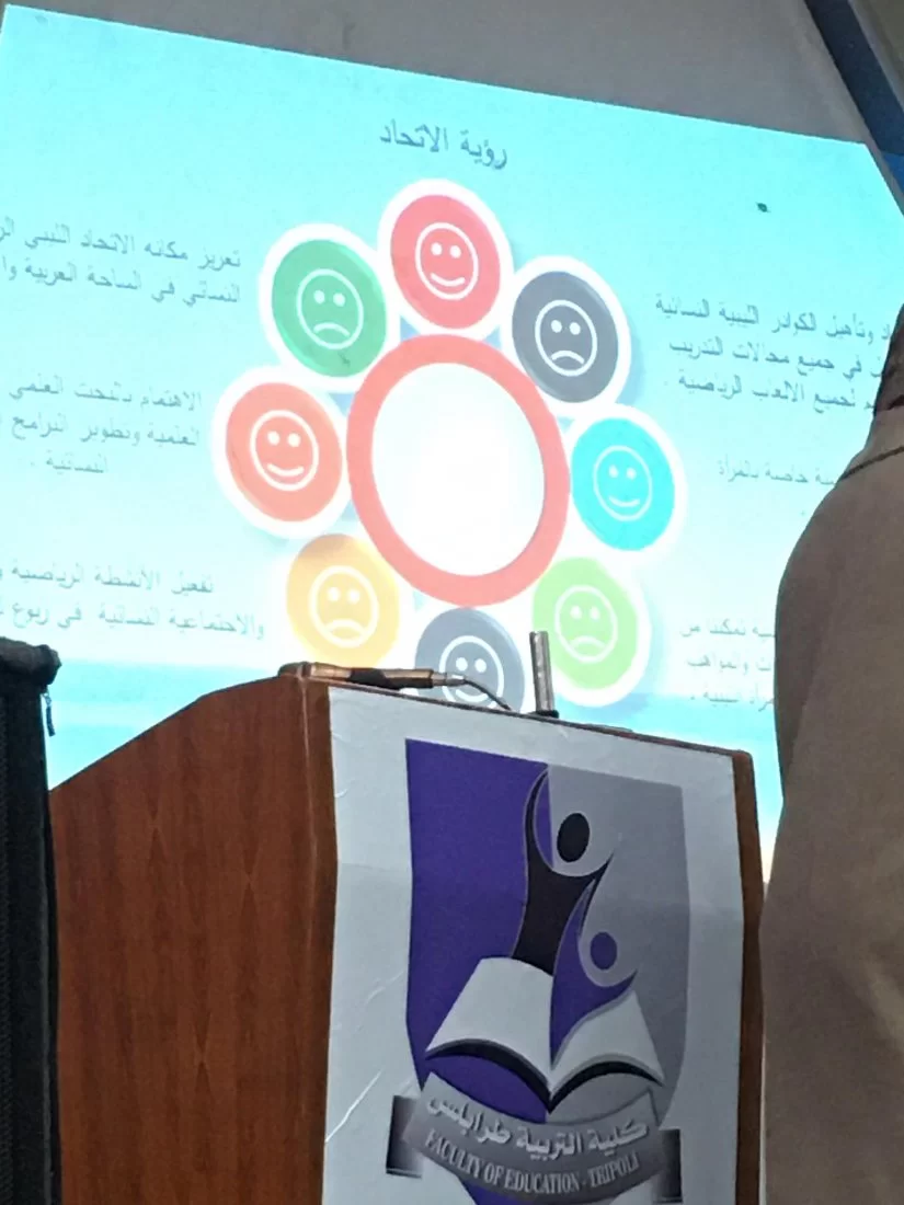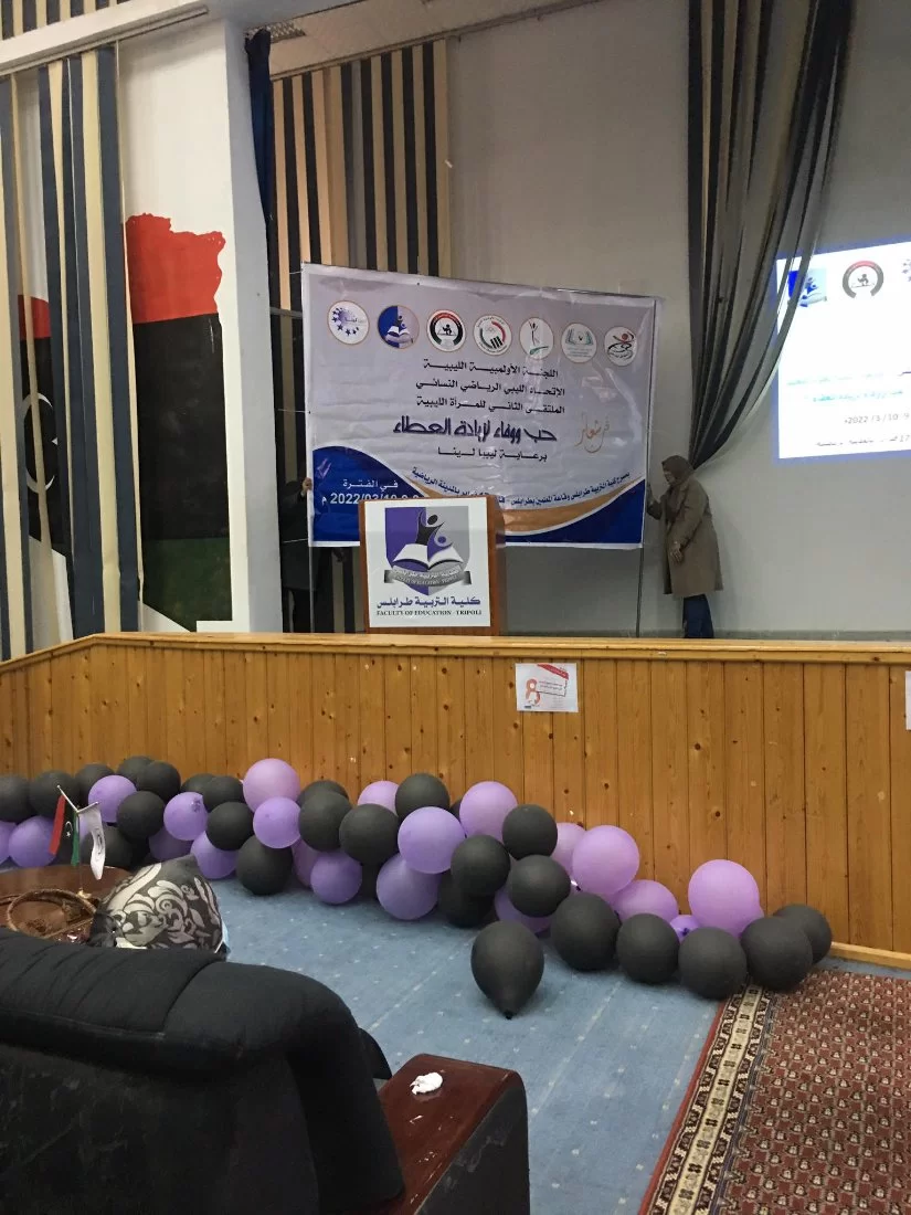 استضاف مكتب خدمة المجتمع وتنمية البيئة بكلية التربية طرابلس اليوم الثلاثاء الموافق 8/3/2022م الملتقي الرياضي الثقافي الثاني لمعلمات التربية البدنية بمدينة طرابلس الكبرى باشراف السيدة عواطف ابوشويشة رئيس الاتحاد الليبي السيدة ليلى جويبر بصفتها مقرر الاتحاد الليبي الرياضي، والسيد عبدالغني الجبراني مدير مكتب النشاط بمراقبة التعليم سوق الجمعة ومنسق عام المنطقة الغربية بمكتب النشاط بوزارة التعليم ورؤساء وحدات النشاط بمراقبة التعليم سوق الجمعة ، حيث أن هذا الملتقي له أهمية في تعزيز ورفع كفاءات أداء معلمات التربية البدنية داخل مؤسساتنا التعليمية وفي مختلف المراحل التعليمية