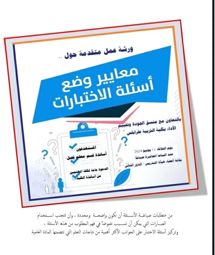 ضمن الخطة التدريبية المعتمدة للفصل الدراسي ربيع 2024 والتي يشرف عليها منسق البحوث والاستشارات والتدريب بالقسم نعلن للزملاء الكرام حزمة من البرامج على النحو التالي :