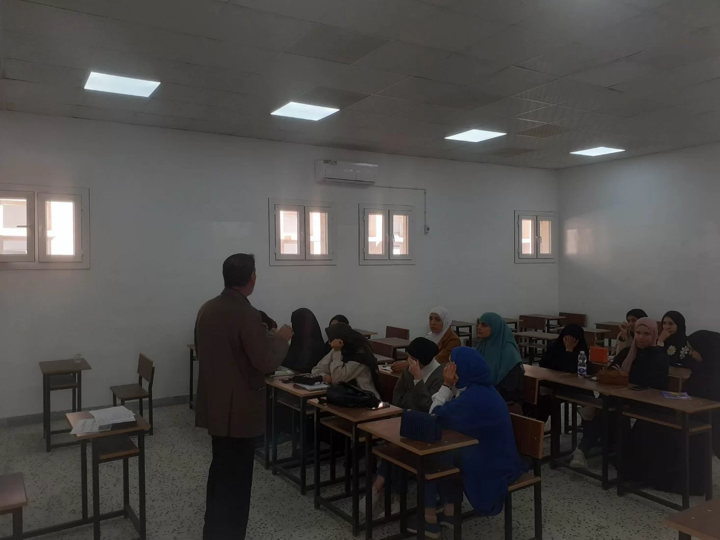 اللقاء التقابلي بالطلبة الجدد لفصل الخريف2022 نظم قسم معلم فصل بكلية التربية طرابلس صباح اليوم الاربعاء الموافق 22/11/ 2022م لقاء بالطلبة الجدد للفصل الدراسي خريف 2022م وذلك باحد قاعات الكلية بحضور الدكتور محمد بلعيد والأستاذ علي الهمالي.