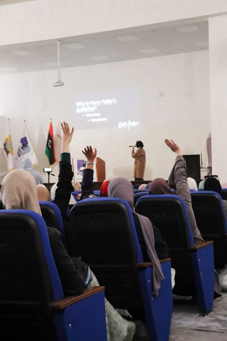 أحيا فريق النشاط بقسم اللغة الإنجليزية يوم الخميس 29/2/2024 يوم اللغة الإنجليزية والذي أبدع الفريق في الإعداد له وتقديمه.حضر جزء من فاعلية النشاط السيد وكيل الكلية للشؤون العلمية والسيدة منسق النشاط بالكلية وعددا من أساتذة وطالبات القسم وأساتذة الكلية من مختلف الأقسام العلمية بالكلية .عرض الطلاب عددا من الفقرات المتنوعة و الشيقة والتي تميزت بروعة الأداء والعرض والتقديمشارك في فقرات اليوم السيد أ.محمد الباوندي والسيد د. فتحي الفاضلي اللذان قدما فقرتين مميزتين شدت اهتمام الحاضرين.و في يوم اللغة الأنجليزية تم الإعلان عن اصدار كتاب في مجال الشعر باللغة الإنجليزية لطالبة القسم المتميزة رغد الحجاجي والتي أهدت نسخا من كتابها لادارة الكلية وعددا من ضيوف النشاط.الحضور كان رائعا والتفاعل عكس روعة أداء الطلاب وتمكنهم من استخدام اللغة في مواقف متنوعة ومع نهاية برنامج النشاط تم توزيع شهادات تقدير على الضيوف و فريق النشاط.إدارة القسم تتقدم بالشكر والتقدير لإدارة الكلية على دعمها لإقامة مثل هذه المناشط بالكلية و لكل الحاضرين من الأساتذة والطلاب وأولياء الأمور والضيوف على تشريفهم وحضورهم ودعمهم للقسم وفريق النشاط.كما نتقدم بالشكر للسيدتين أ.أميرة توفيق وأ.إيمان ارحيم على اشرافهما على تنظيم الفريق والاعداد لهذا النشاط والاشراف عليه..شكرا خاص لجميع أعضاء فريق النشاط والإشراف والتنظيم على حسن الأداء وحرصهم على نجاح هذا النشاط باستمرار ..متمنين للجميع دوام التألق والتوفيق.#قسم_اللغة_الٱنجليزية