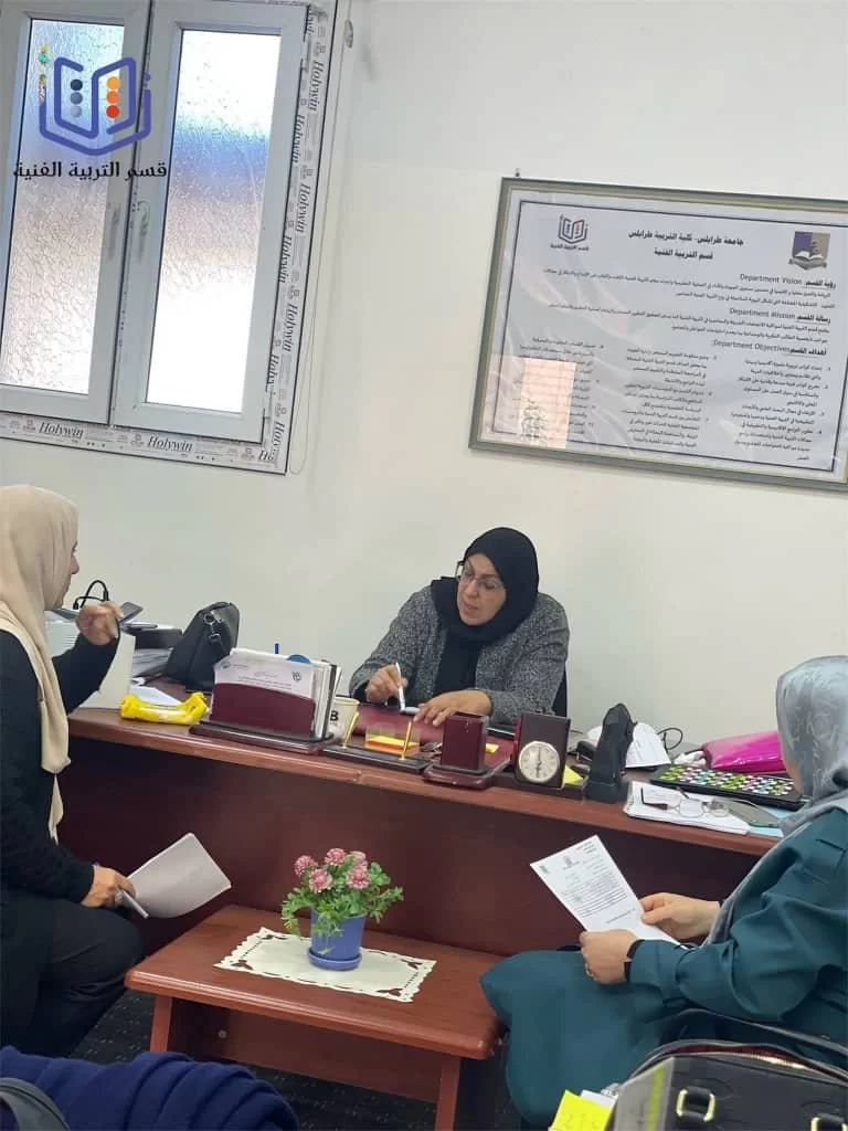 عقدت اللجنة العلمية بقسم التربية الفنية اجتماعها العادي الثامن يوم الاثنين الموافق 22 / 12 / 2025م، وذلك على تمام الساعة العاشرة صباحًا بمقر القسم، برئاسة