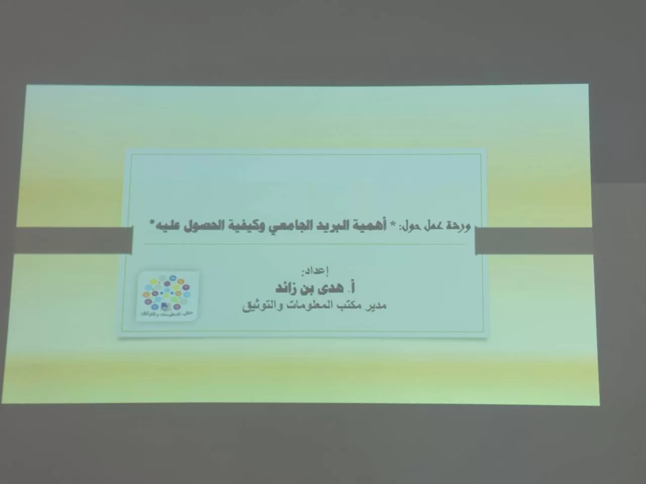 عقد مكتب المعلومات والتوثيق ورشتي عمل صباح اليوم ، وصباح يوم الأربعاء الماضي حول: «البريد الجامعي» استهدف بهما الطالبات المستجدّات بالأقسام العلمية بالكلية للفصل الحالي، وكذلك النظاميات اللاتي لم يتحصّلن عليه.