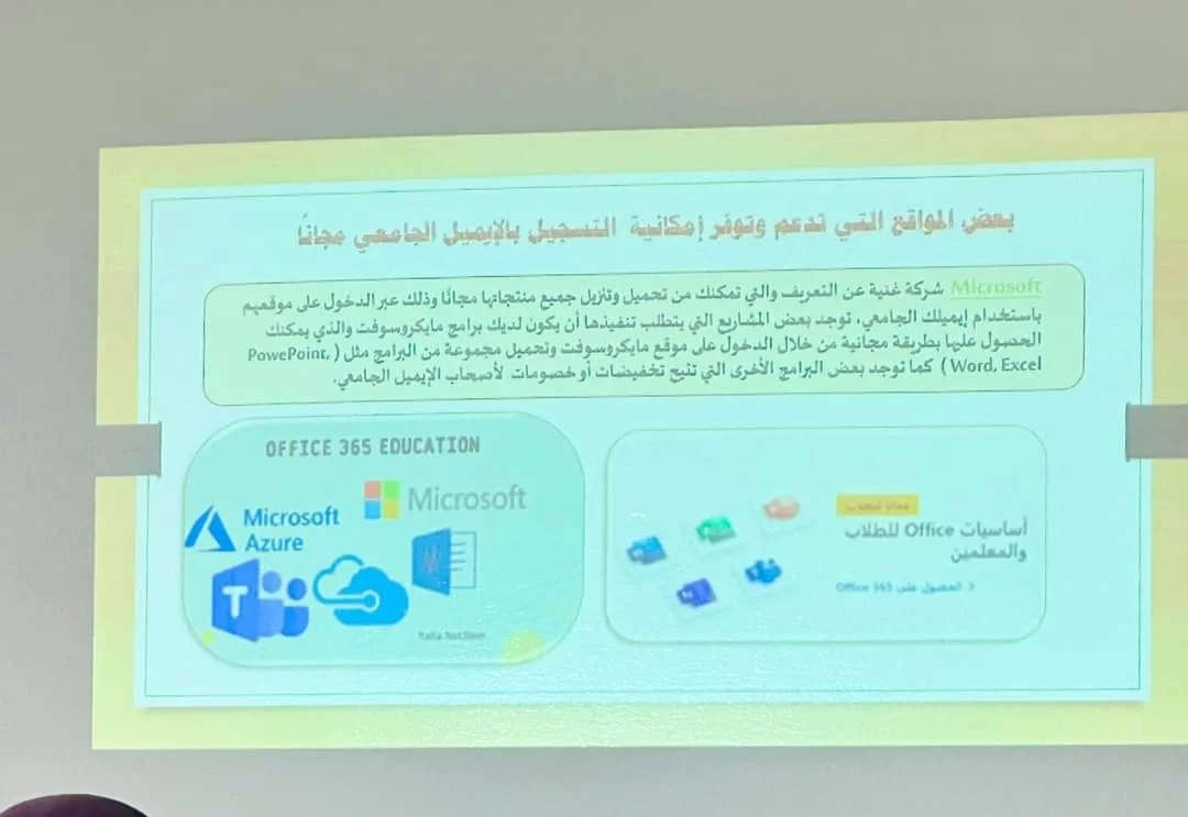 قدّمتهما مديرة المكتب، حيث تضمّنتا شرحًا مُفصلًا لأهم خصائص البريد الجامعي وكيفية الحصول عليه واستخداماته وكيفية تفعيله، وأكدت مديرة المكتب على ضرورة الحصول عليه لمدى أهميته للطالبات، لكونه وسيلة أساسية للتواصل مع  كامل الهيئة التدريسية بالإدارة الجامعية، كما أنه يستخدم في إرسال واستقبال المهام وجميع المستندات الجامعية.