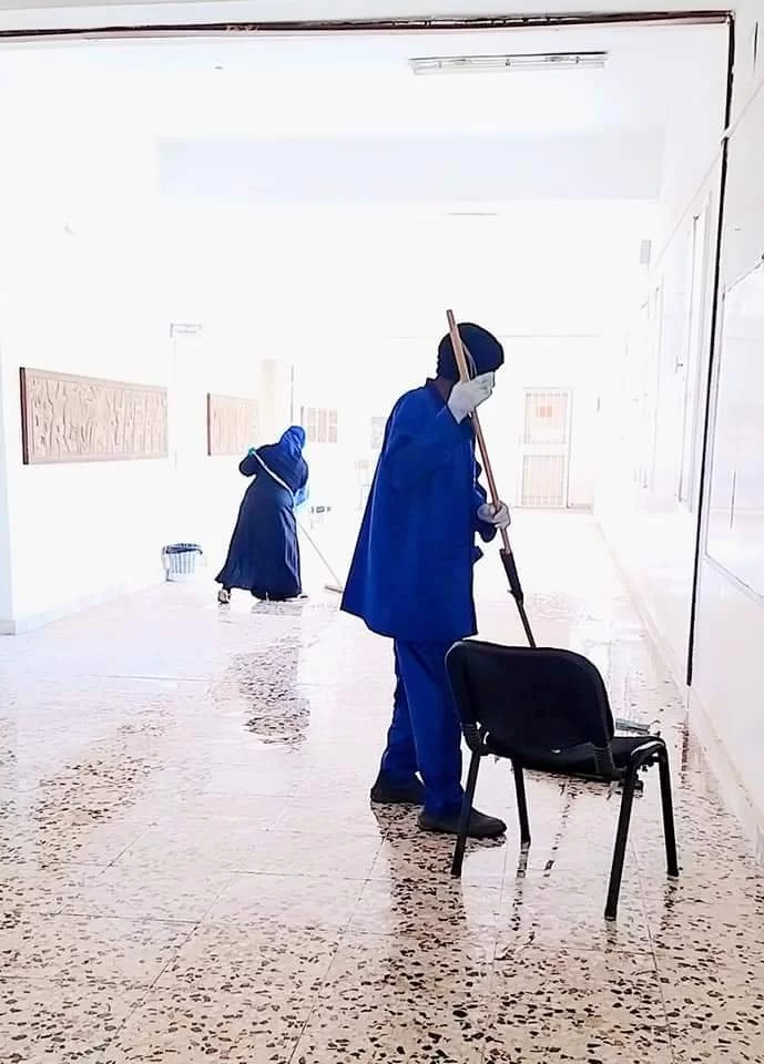 بارك الله في عاملي كلية التربية على بذلهم كل الجُهد في سبيل تنظيف أروقة الكلية ومعاملها وقاعاتها ونثني على تفانيهم في عملهم، أمدّهم الله بالصحة والعافية وبارك لهم أعمارهم، كما نتوجّه بالشكر لمنسق مكتب الخدمات بالكلية أ. محمد آغا على حُسن إشرافه على العاملين بالكلية، وتقديمه لكل الخدمات التي تفيد الكلية من صيانة وتنظيف، ونثني على مدى إخلاصه في عمله باركه الله له وحفظه من كل مكروه.