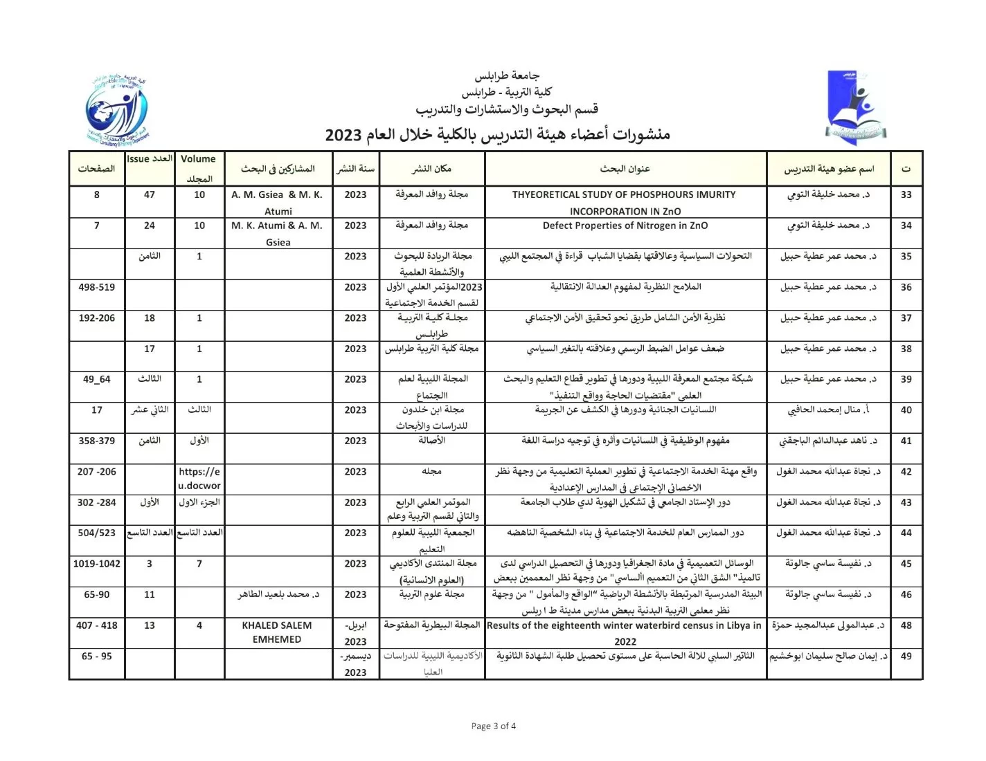 قائمة بالبحوث المنشورة لأعضاء هيئة التدريس بقسم رياض الأطفال في سنة 2023م .بحوث الدكتوره : نجاة عبد الله الغول