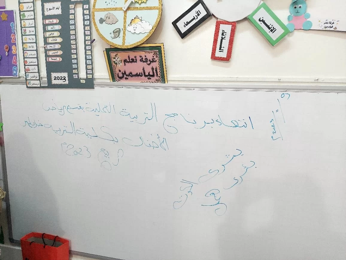 تم اليوم الخميس بتاريخ9/11/2023م ختام برنامج التربية العملي للفصل الدراسي ربيع2023م وكان الختام باحتفالية الطالبات المعلمات مع منسق المعلومات والتوثيق بالقسم ا. سنيه دويك ومديرة الروضة ومعلمات الروضة والأطفال وكان يوم ممتع ومرح للأطفال .