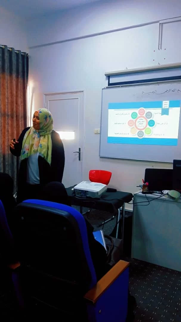 بعد الورشة، قدمت الأستاذة **نسرين غربال**، منسقة التربية العملية بالقسم، بعض التعليمات الخاصة بتنظيم الطالبات وتوزيعهن على روضة الأمل المشرق وروضة عروس طرابلس.