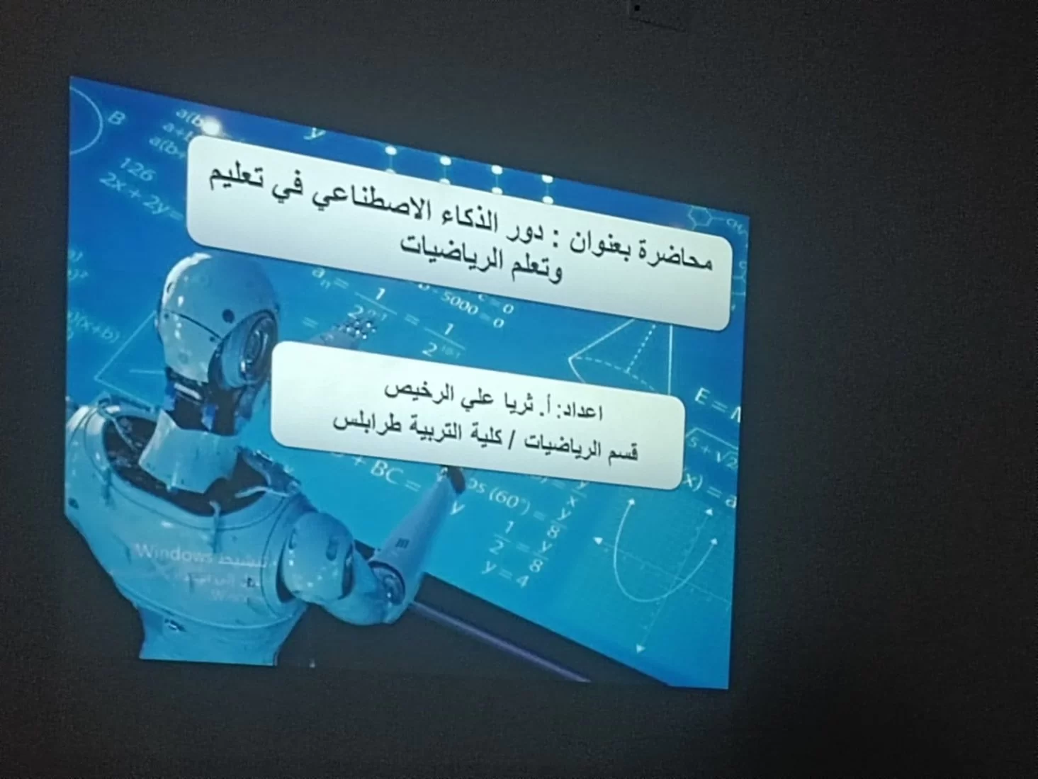 اليوم الاثنين ( 22/ 1/ 2024) احتضن قسم الرياضيات محاضرة مميزة تناولت "دور الذكاء الاصطناعي في تعليم وتعلم الرياضيات "قدمتها الاستاذة (ثريا علي الرخيص ) كانت محاضرة ملهمة ومفيدة لتعريف بالذكاء الاصطناعي ،و فهم كيفية تفعيل تقنيات و تطبيقات الذكاء الاصطناعي في ساحة التعليم وخاص