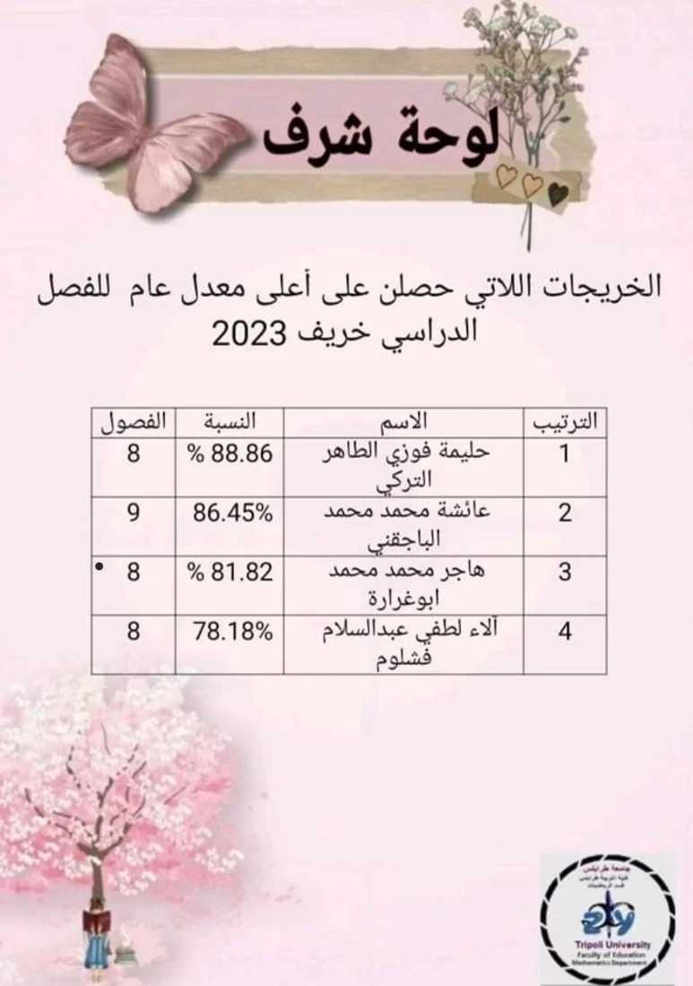 لوحة الشرف للفصل الدراسي خريف 2023
