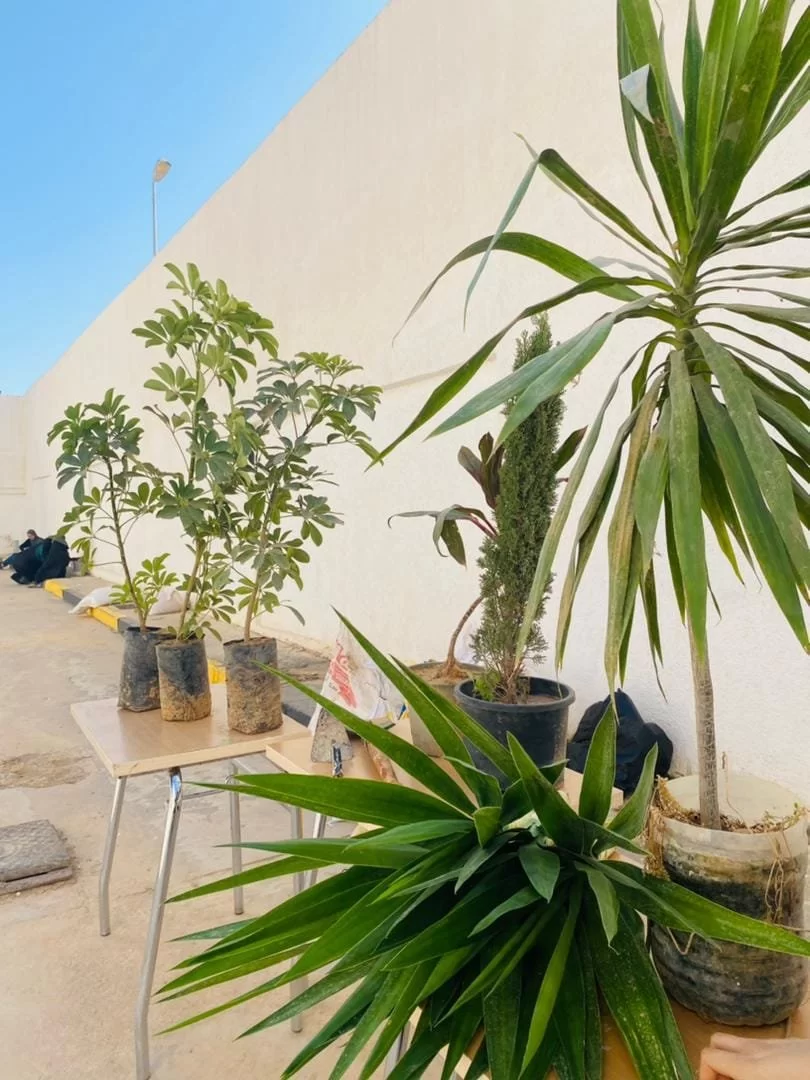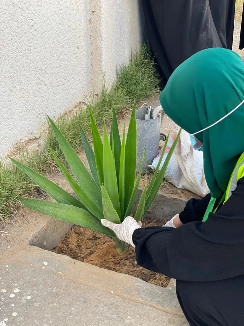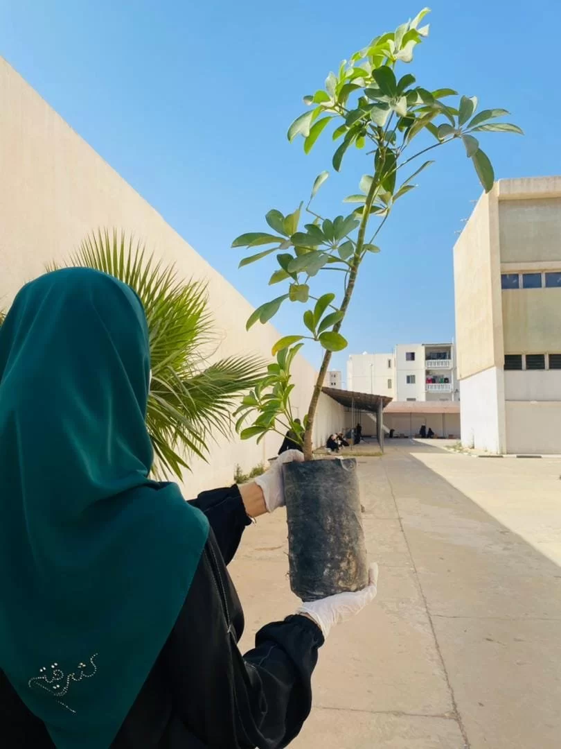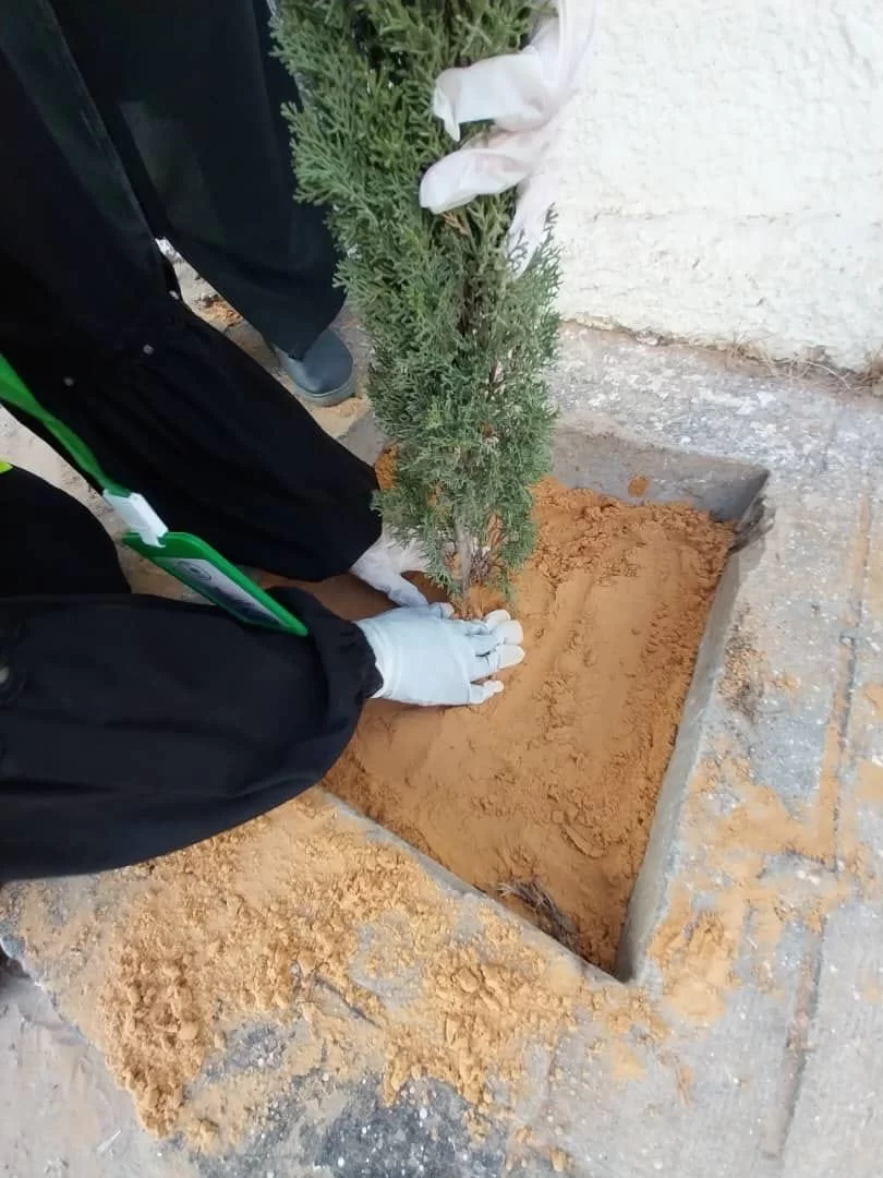 تم فيه غرس مجموعة من أشجار الزينة في ساحة الكلية الخلفية.