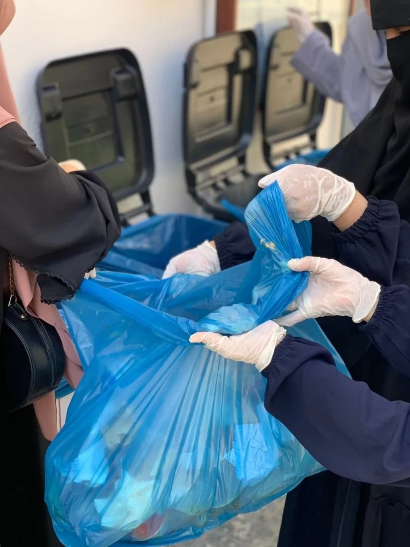 تم خلاله جمع قمامة الكلية وتصنيفها في حاويات قمامة مخصصه لكل نوع ( ورق ؛ بلاستيك ؛ مواد عضوية؛ معدن )