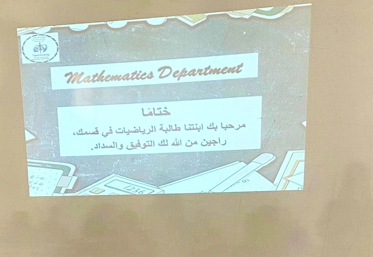 تم يوم الخميس الموافق ( 30 / 11 / 2023) على تمام الساعة 9:30 صباحًا في( القاعة 101) ملتقى لاستقبال الطلبة الجدد لقسم الرياضيات للفصل الدراسي (خريف2023).وذلك بحضور رئيس القسم الاستاذة ( عائشة ابو طرطور ) وبعض اعضاء الهيئة التدريسية بالقسم وهم .أ. نجم الدين الفتحلي. د. ربيعة عويدان أ. اسماء الاحول .د. سناء الفايدي .أ. ثريا الرخيص.ولقد تشرف الملتقة بحضور الاستاذة(ايمان ابو خشيم )عضو هيئة التدريس الجديدة بالقسم .بدأ اللقاء بكلمة ترحيب ألقتها رئيسة القسم.بعد ذلك قامت الاستاذة ثريا بعرض تقديمي (بوربوينت) يتضمن التعريف بالقسم وبكل ما يتعلق بسير العملية التعليمية داخله ، هذا العرض شاركت فيه أيضًا رئيسة القسم حيث قامت بتوضيح و شرح كل ما تم عرضه .إضافة إلى ذلك كان هناك عرض مرئي قامت بإعداده الطالبة المتميزة ( هاجر أبو غرارة ) يبين طريقة دخول الطلاب لموقع الجامعة وكيفية التعامل مع البوابة الإلكترونية في تنزيل المقررات وعرض النتائج وكل ما يتعلق بإجراءات المنظومة.الى جانب ذلك قامت الأستاذة ثريا الرخيص بتوضيح مدى أهمية البريد الجامعي للطلاب وكيفية الحصول عليه .وتم خلال هذا الملتقى أيضا الإجابة على كل استفسارات الطلبة الجدد وتساؤلاتهم .وقد تخلل فقرات هذا اللقاء المميز توزيع بطاقات الطلبة الجدد وخريطة توضيحية لمواد التخصص والعامة والتربوية الخاصة بالقسم ..نشكر رئيسة القسم وأعضاء هيئة التدريس بالقسم على كل هذه الجهود التي ساهمت في توجيه وإرشاد طلابنا الجدد ..نشكر أيضا طالباتنا المتميزات من فريق النشاط الذين كانوا في الموعد..أسماء المزوغي ⚘سجى دحيم ⚘هاجر ابو غرارة ⚘ختامًا ..مرحبا بكِ ابنتنا طالبة الرياضيات في قسمك ، راجين من الله تعالى لك التوفيق والسداد .منسق التوثيق والمعلومات بالقسم .