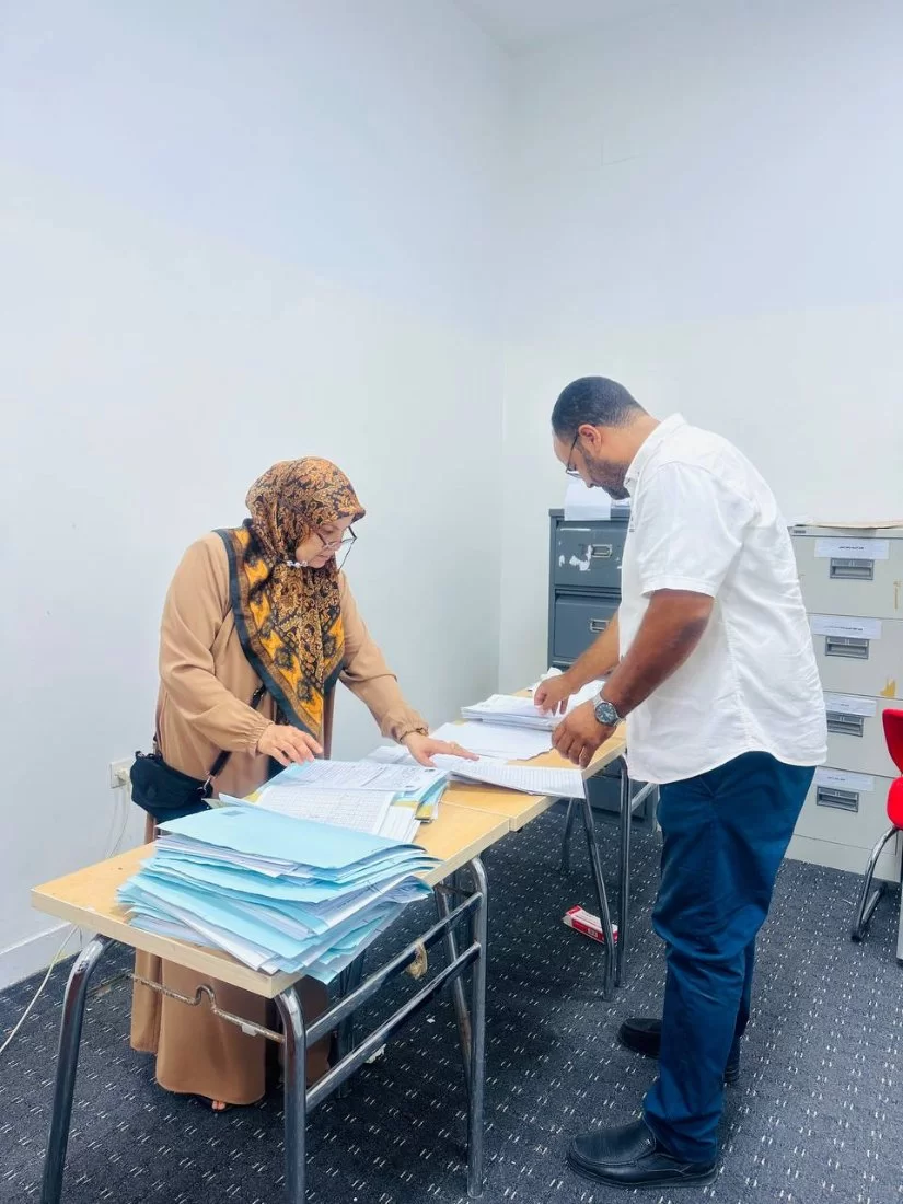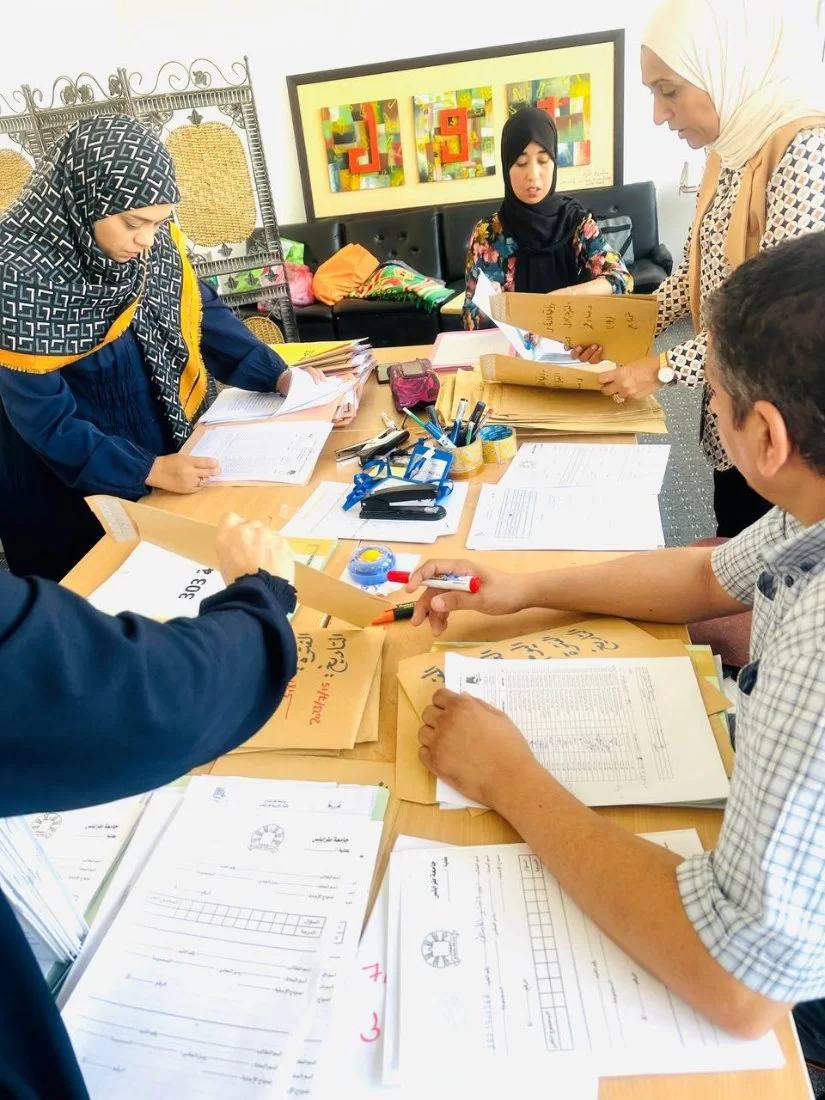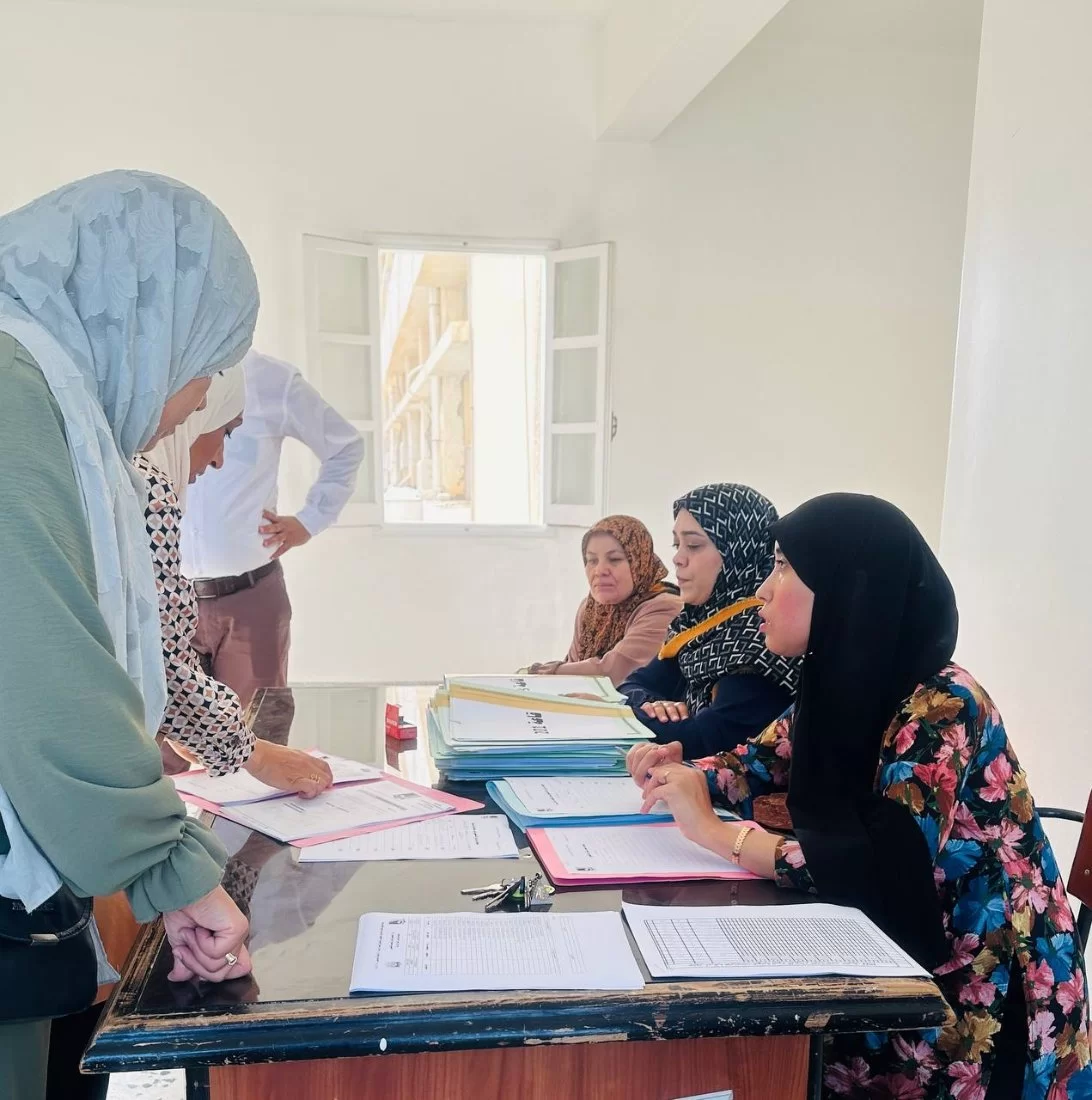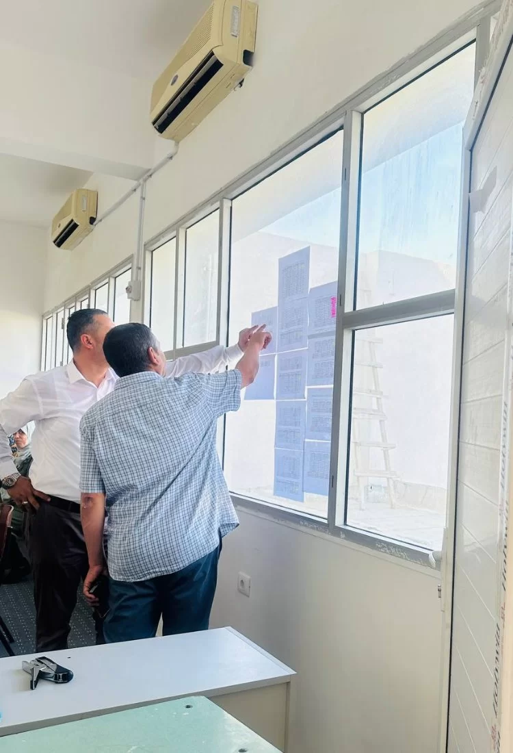 ووفقًا للألية التي تتخذها اللجنة كل فصل دراسي في فترة الامتحانات النهائية تم توزيع الملاحظين مع نماذج الأسئلة على جميع اللجان، والاشراف العام على هذه اللجان للتأكد من عملية توزيع الأسئلة على كافة الطلبة الممتحنين داخلها بكل يسر، في الفترتين الصباحية والمسائية.
