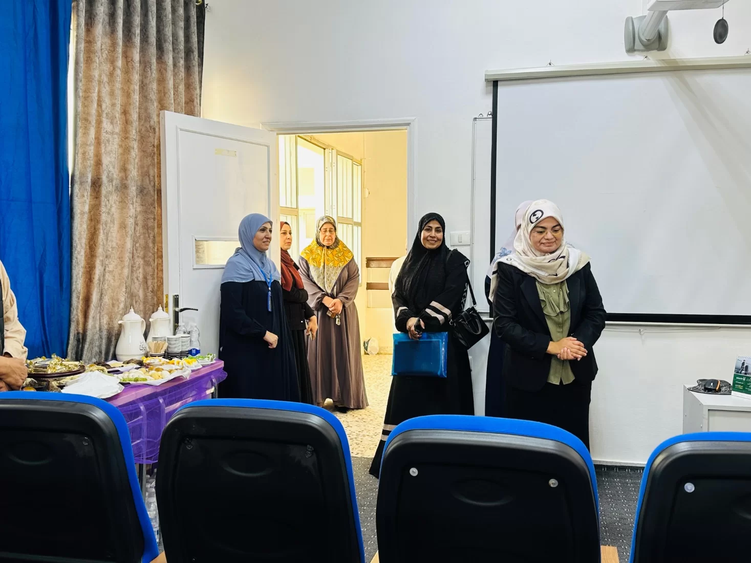 كما أثنت إدارة الكلية على عمل أفراد الكادر الوظيفي بإشراف مكتب الشؤون الإدارية في تجهيز هذه القاعة بالمجهودات الذاتية على الشكل المطلوب، وباركت جهودهم المبذولة لإظهار الكلية في أبهى صورة بما يليق بمؤسسة علمية تعليمية يتلقّى فيها العلم والمعرفة.