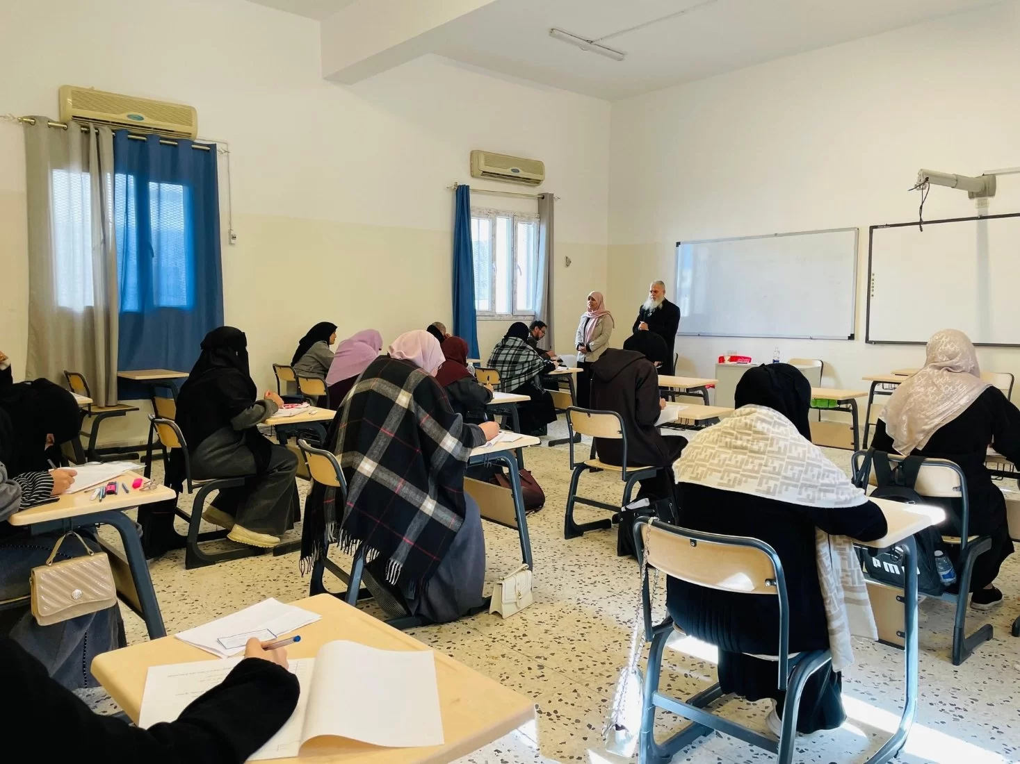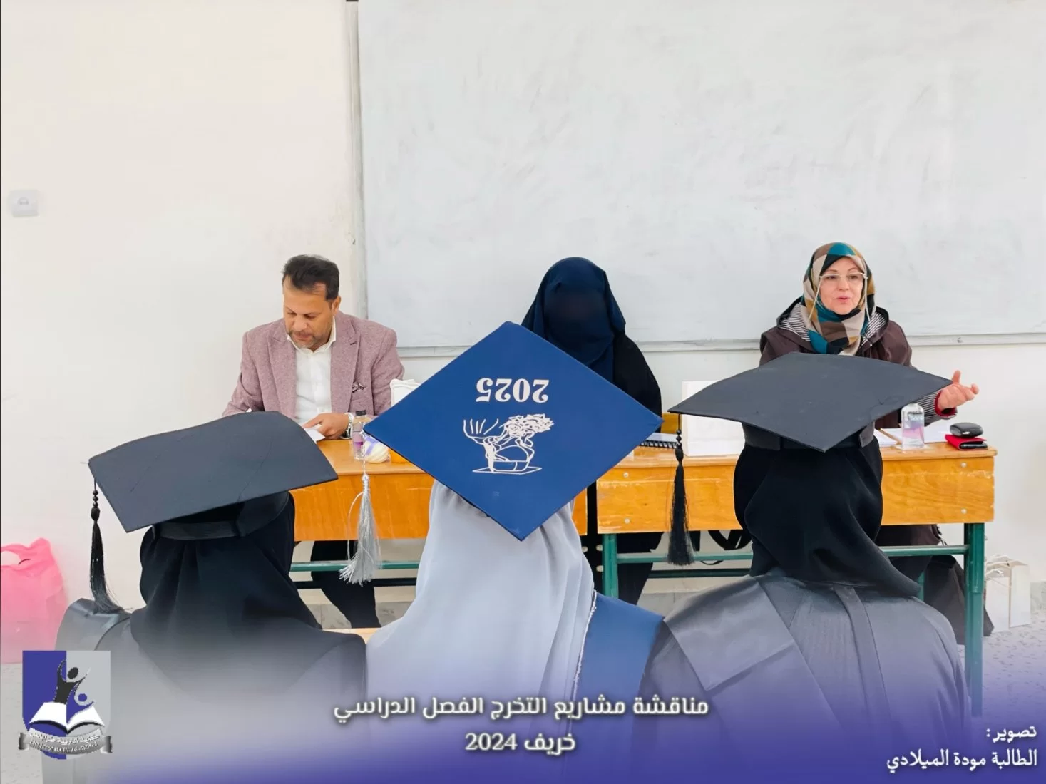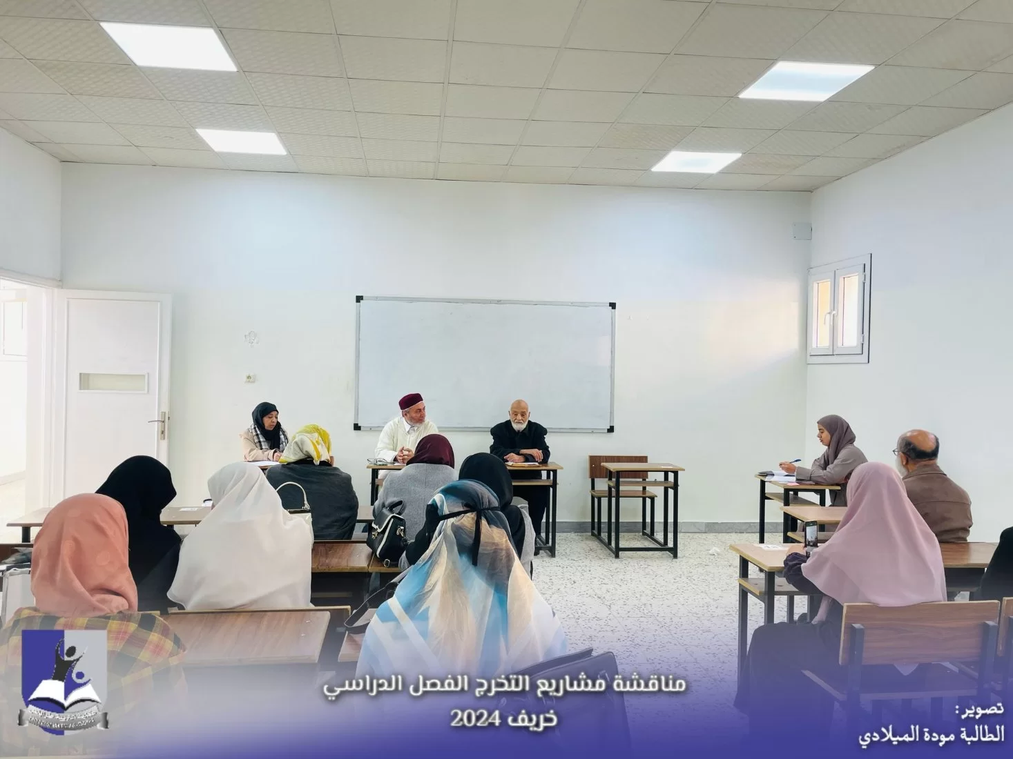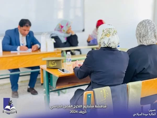 وسط أجواءٍ من الفرحِ والاحتفاءِ بالإنجازات العلميّة التي تمّ تحقيقها، شهدتْ كلية التربية طرابلس من يوم السبت الموافق 18-1-2025 إلى يوم الأربعاء الموافق 22-1-2025 تنظيم جلسات مناقشة مشاريع التخرج لعدد مائة وخمسة وعشرين (125) طالبة من طالبات الكلية موزعة على أحدَ عشرَ قسما خلال الفصل الدراسيّ الحالي (الخريف 2024)، حيث عرضت الخريجات أعمالهنّ البحثية أمام لجنة من الأساتذة المختصين، تناولت المشاريع مواضيعَ متنوعة تشمل مجالات عدة منها تخصصية وتربوية، وتقنيات التدريس وسبل تحسين البيئة التعليمية، وغيرها من الموضوعات التي تسهم في الارتقاء بمستوى التعليم...أعربتْ إدارة الكلية عن إعجابها بالمستوى العالي للأبحاث المقدمة، وأثنتْ على الجهود المبذولة من قبل الطالبات والإشراف المتميز من قبل أعضاء هيئة التدريس. ومن جانبه تؤكد هذه المشاريع على دور الكلية في إعداد معلمين مؤهَلين وقادرين على مواجهة تحديات المستقبل.وهذا يعود لدور أعضاء هيئة التدريس بالكلية في توجيه وإرشاد الطالبات، وكذلك الدعم الذي تقدمه الكلية للطالبات لإنجاز مشاريعهنّ.وفق الله الجميع