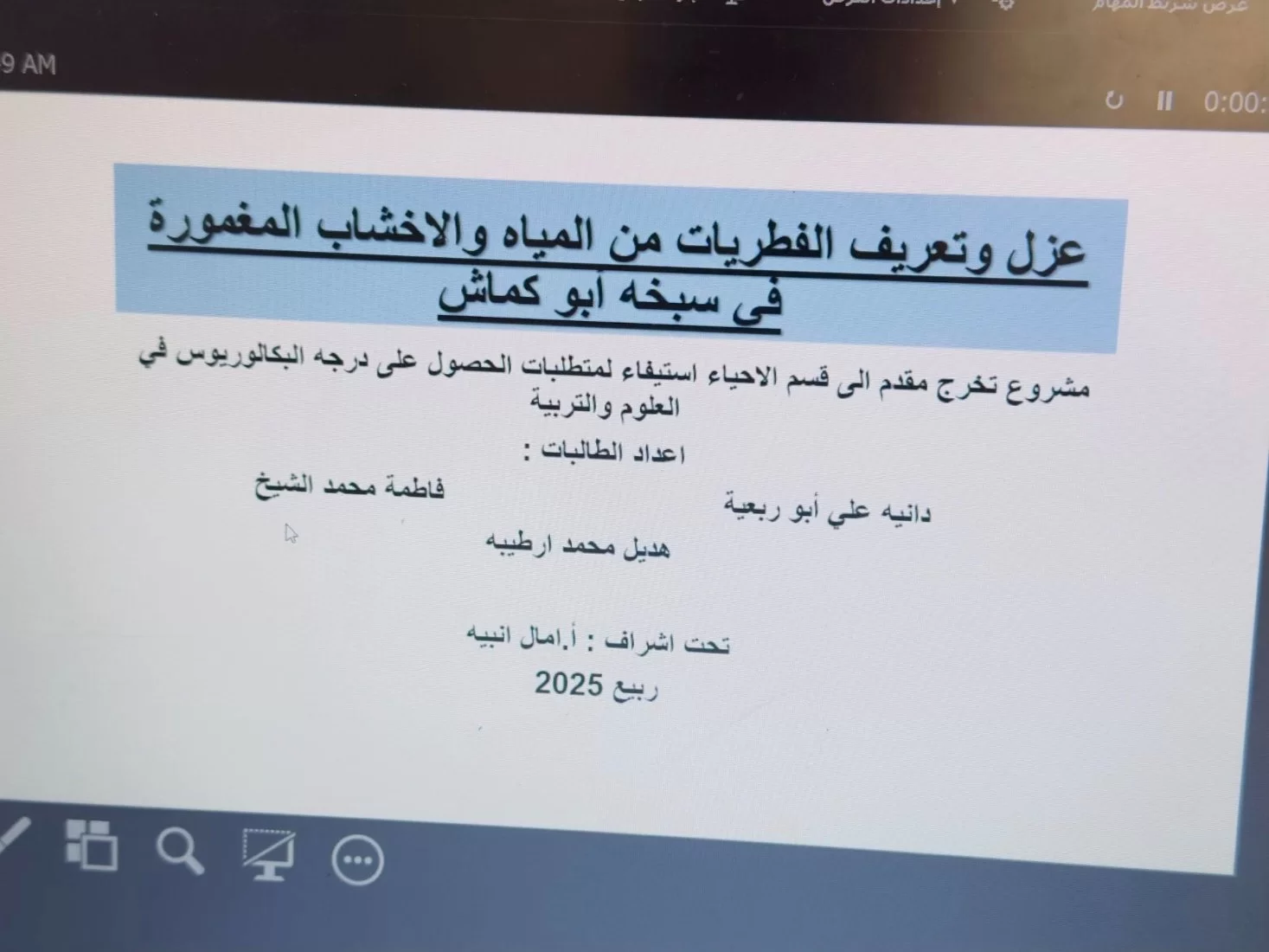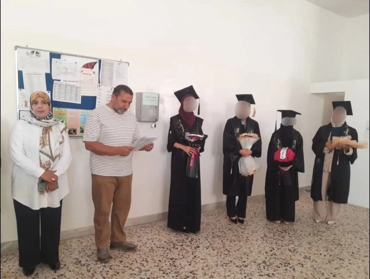 أقام قسم الأحياء حلقات نقاش لمناقشة مشاريع التخرج المقدّمة من خريجات الفصل الحالي (ربيع 2025م) واللاتي بلغ عددهنّ (16) طالبة، لنيل درجة البكالوريوس في العلوم والتربية، على مدار ثلاثة أيام بدأها يوم السبت؛ الموافق: 5\7\2025م. واختتمها ظهر يوم الأمس الإثنين؛ الموافق: 7/ 7/ 2025م.تم تشكيل (6) لجان ممتحنة من أعضاء الهيئة التدريسية بالقسم وفق تخصص كل مجموعة، وشملت المشاريع تنوعًا في الدراسات التي أنجزتها الطالبات؛ وقد قامت الطالبات بتقديم نبذة مختصرة عن مشاريعهنّ وذلك بسرد أهم نتائج دراستهنّ التي توصلنّ إليها خلال بحوثهنّ؛ وذلك من خلال عرض توضيحي موجز أبدعنّ جميعهنّ فيه بفن الإلقاء؛ وقد شرفنا بحضور المناقشات عدداً من أولياء أمور الخرّيجات وأصدقائهنّ.مع نهاية المناقشات تقدّم أعضاء اللجان الممتحنة بالثناء على حُسن اختيار الدراسات والجهد المبذول لتنفيذها، ويفخر القسم بتخريج دفعة جديدة من طالباته مع نهاية هذا الفصل الدراسي.يتقدّم مجلس القسم بكامل كادره التدريسي والوظيفي بالشكر والتقدير لكل من شاركنا هذه الفعاليات وشرّفنا بحضوره الكريم من أولياء الأمور، وبتهنئة جميع الخريجات دفعة الفصل الدراسي (ربيع 2025م.)، ونستودعهنّ بالدعوات القلبية بدوام التوفيق في إكمال مشوارهنّ في الحيا
