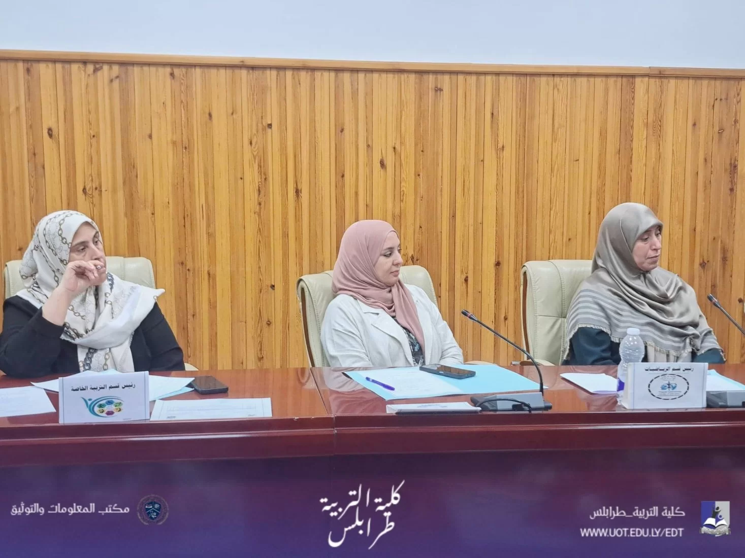 #كلية_التربية_طرابلس | #متابعات | مجلس كلية التربية يعقد اجتماعه العادي الثالث للعام الجامعي 2026معقد مجلس كلية التربية - جامعة طرابلس صباح اليوم الاحد الموافق 12 - 4 - 2026 اجتماعه العادي (الثالث ) لعام الجامعي 2026م، برئاسة السيدة عميد الكلية د. مروى سويدان، وبحضور السادة أعضاء المجلس.استهلّت السيدة العميد الاجتماع بكلمة رحّبت فيها بالحضور، مثمنةً جهودهم المبذولة في سبيل الارتقاء بالعمل الأكاديمي والإداري داخل الكلية.بعد ذلك، تم استعراض بنود جدول الأعمال، وكان من أبرزها:1. اعتماد محاضر الأقسام العلمية. 2. الجودة وتقييم الأداء 3.الدراسة والامتحانات.4. بشأن اجازة التفرغ العلمي5. اعتماد نتائج الدراسات العليا للفصل الدراسي خريف 2025/2026كما تمّ خلال الاجتماع مناقشة عددٍ من الأمور المتعلقة بالشأن الداخلي للكلية، بما يخدم سير العملية التعليمية والإدارية.وفي ختام الاجتماع، تم التطرق إلى ما يُستجد من أعمال، سائلين الله التوفيق والسداد لأعضاء المجلس في أداء مهامهم واتخاذ القرارات التي تصبّ في مصلحة الكلية وطلبتها. م. م. ت