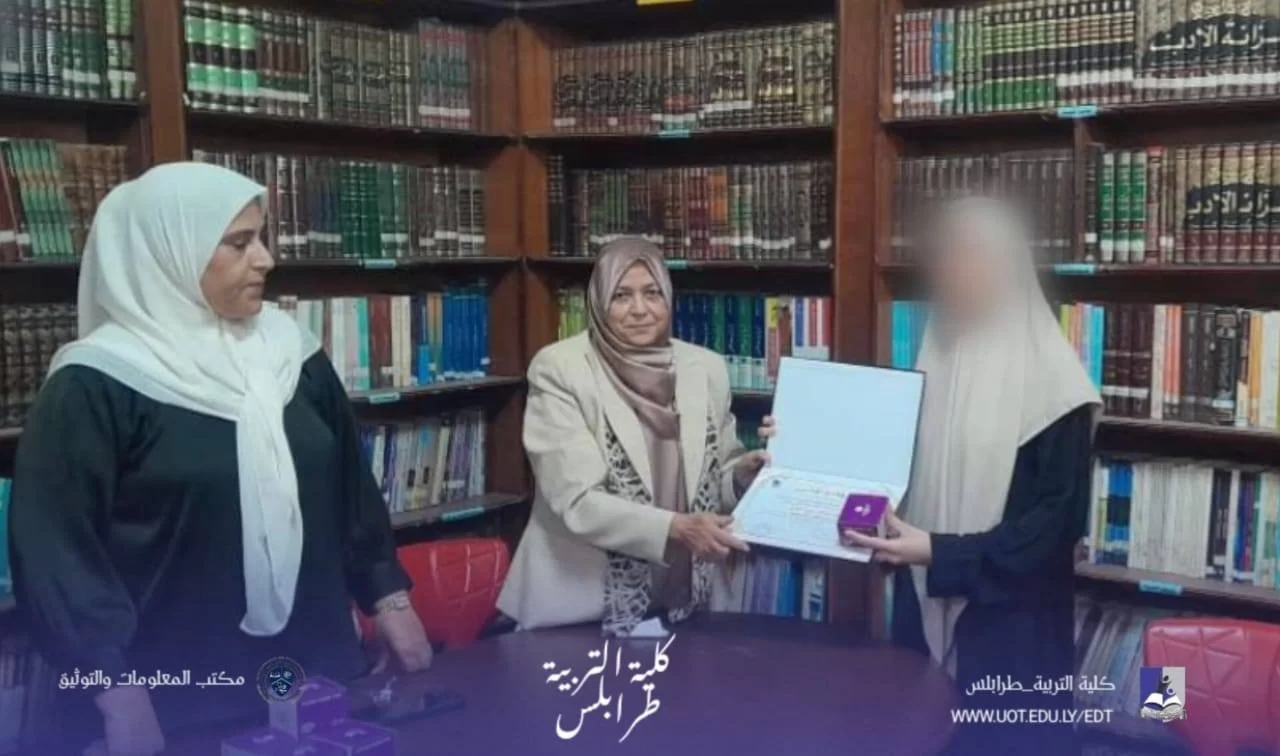 | #متابعات | #كلية_التربية_طرابلس نظّم مكتب الوسائل التعليمية احتفالية لتكريم الطالبات المشاركات في مسابقة “أفضل وسيلة تعليمية” للفصل الدراسي خريف 2025–2026، وذلك في إطار دعم الإبداع الطلابي وتعزيز جودة العملية التعليمية.نتائج المسابقة: المركز الأول: رناد ناصر العالم المركز الثاني: وصال عادل السائح، فرح محمود بن طاهركما تم تكريم باقي المشاركات بمنحهن شهادات تقدير، وذلك تثمينًا لجهودهن، وهن: إيمان محمد المصروب مودة فوزي الشاطر إسراء خليفة صقرروان عادل الفيتوريرؤى عبدالمجيد التونسينمارق وجدي المصقوع هدايا مفتاح وقد تميزت الأعمال المقدمة بمستوى جيد من الجودة والأفكار المبتكرة، بما يعكس روح التنافس الإيجابي بين الطالبات. كما تخلل الحفل عدد من الكلمات التي أكدت على أهمية دعم مثل هذه المبادرات في تنمية المهارات العلمية والتربوية.وفي ختام الفعالية، تم توزيع الجوائز وشهادات التقدير في أجواء إيجابية.يواصل مكتب الوسائل التعليمية دعمه للمبادرات الهادفة إلى تطوير العملية التعليمية والارتقاء بمخرجاتها.مبارك للفائزات، مع التمنيات بالتوفيق للجميع. م. م. ت