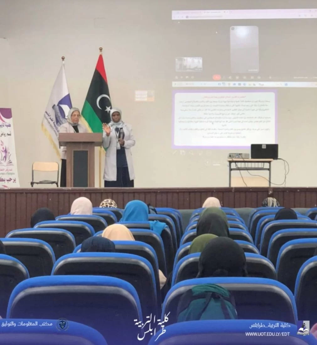 #كلية_التربية_طرابلس#قسم_رياض_الأطفالفي إطار الأنشطة العلمية لقسم رياض الأطفال بكلية التربية طرابلس، أُقيمت محاضرة علمية بعنوان:"تعديل سلوك الطفل في مرحلة الروضة باستخدام استراتيجيات العلاج السلوكي المعرفي"وذلك يوم الثلاثاء الموافق 14 أبريل 2026م، في تمام الساعة 10:00 صباحًا، بمسرح الكلية، مع إتاحة الحضور والمشاركة عبر تطبيق Google Meet.قدّمت المحاضرة: د. رقية دومة، حيث تناولت أبرز الأساليب العلمية الحديثة في تعديل سلوك الطفل داخل بيئة الروضة، مع عرض تطبيقات تربوية عملية تدعم المربين والمعلمات في هذا المجال.وقد شهدت المحاضرة تفاعلاً علمياً مثمراً من الحضور، في إطار تعزيز الوعي التربوي وتبادل الخبرات الأكاديمية.كل الشكر والتقدير لكل من ساهم في إنجاح هذا اللقاء العلمي. م. م. ت