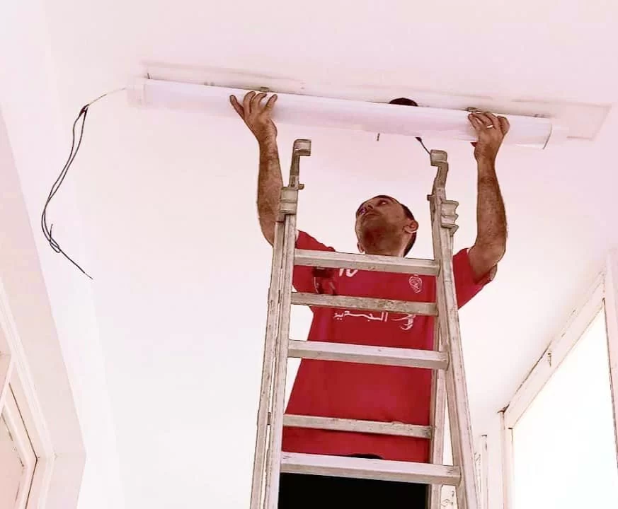 استمرار أعمال صيانة الشبكة الكهربائية داخل مبنى الكلية