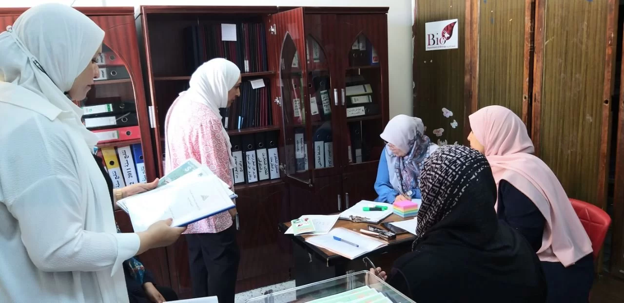 قامت اللجنة المكلّفة من إدارة الكلية بمتابعة متطلبات الجودة في الأقسام العلمية اليوم صباحًا بقيادة السيدة وكيل الشؤون العلمية بالكلية د. نجاة القاضي رفقة أعضاء اللجنة: